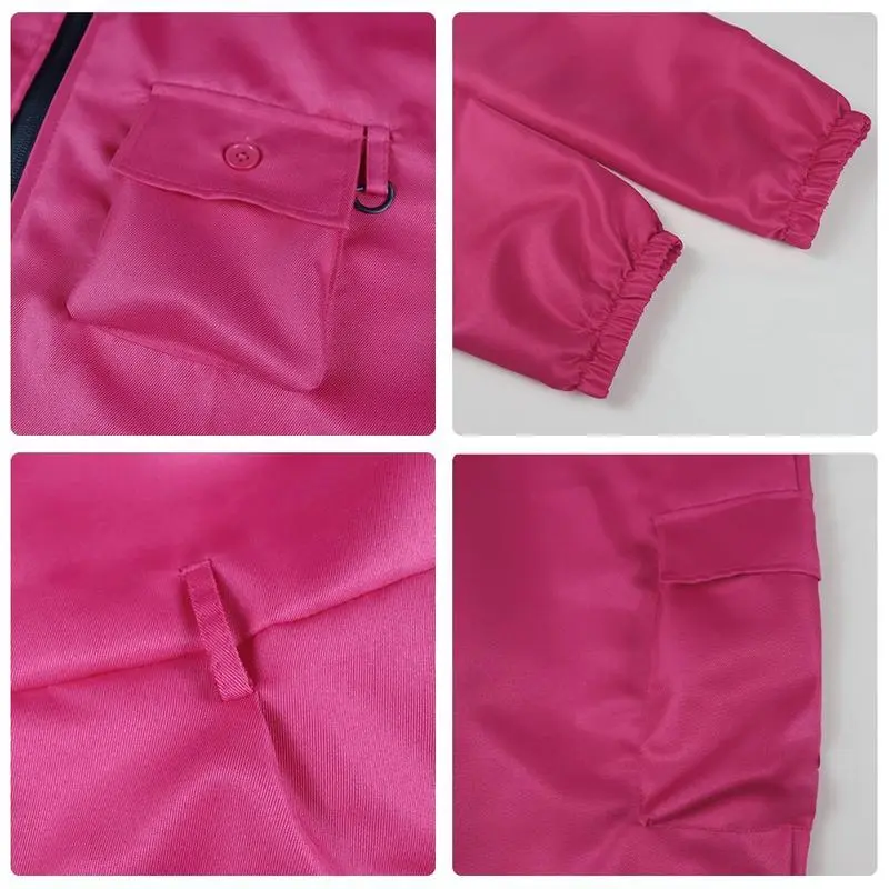 Rose red jumpsuit+belt+gloves