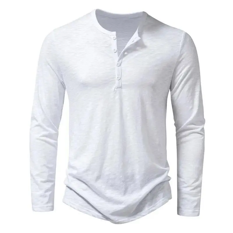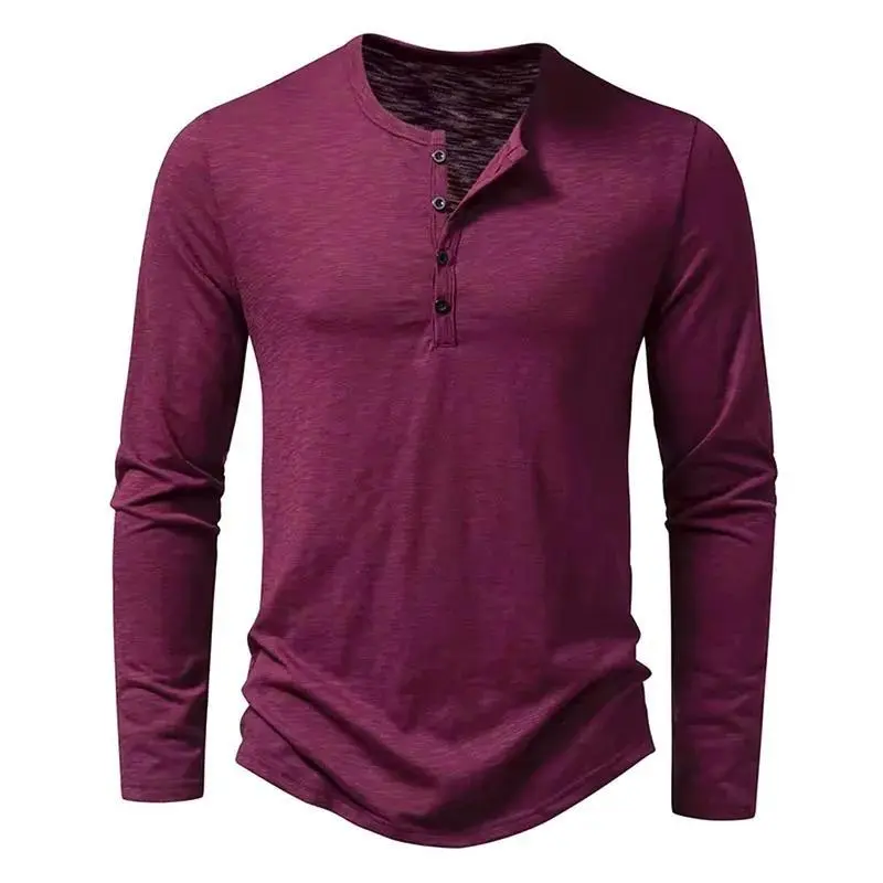 Autumn New Men's Cotton Button Long Sleeve Henley Neck T-Shirt Casual Solid Color Breathable Versatile Fashion Slim T-Shirts