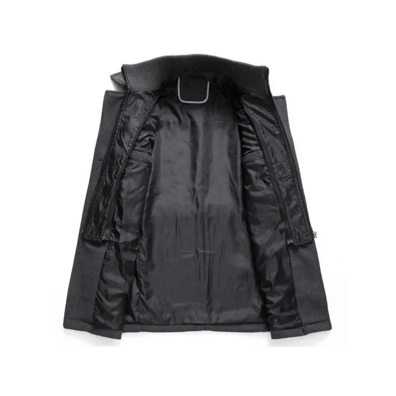 Men's Fashion Double Collar Mixed Fiber Long Coat, Zipper and Pocket Design, Warm and Durable, Suitable for Business or Casual Autumn/Winter, Casual Jacket Coat