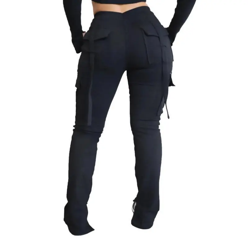 Cargo Pant Women Long Pants Sexy Slim Fit Casual Drawstring Splice Button Pocket Straight Trousers Lace Up High Elastic Waist
