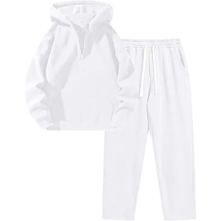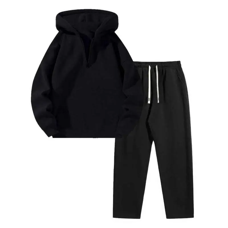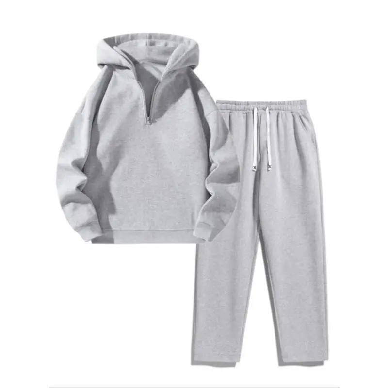 ��Warmth Assurance��: The moderate fabric thickness ensures warmth while providing an inviting feel during fall and winter. ��Zipper Feature��: The half-zip design allows for easy wear and adjustments, making dressing simple and efficient. ��Loose Fit��: With a loose-fitting cut, this set allows for easy movement, catering to various outdoor activities. ��Plain Pattern��: The plain pattern offers simplicity, allowing for easy pairing with other wardrobe essentials. ��Durable Fabric��: Crafted from high-quality knitted fabric, ensuring longevity and resistance to wear during outdoor use.