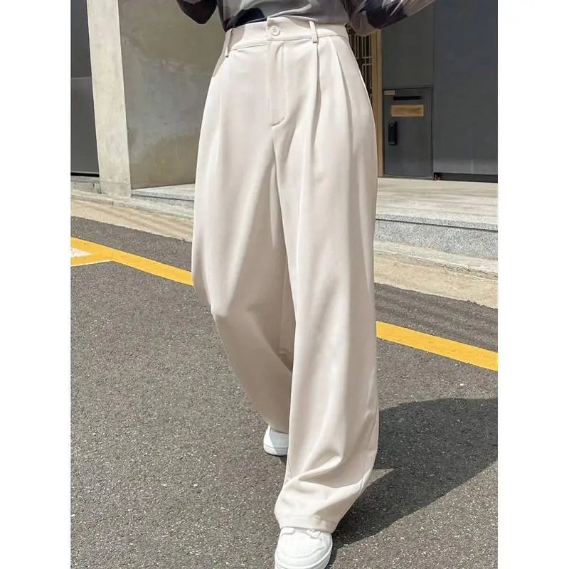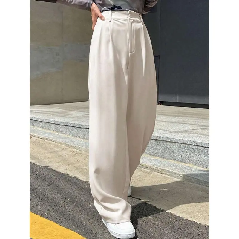 Women'sApricotCasualPleatedWideLegPantsLooseFitStraightLegElasticWaistZipperFlyPlicatedRegularFitPolyesterFabricDaily&FestiveWearBottomsWomenswear