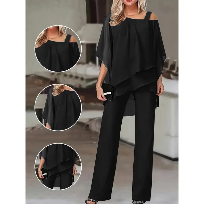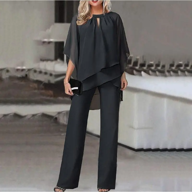 Bridal Mother Pants Set Plus Size Half Sleeve Chiffon Pants Set Formal Wedding Guest Dress Women's Wear