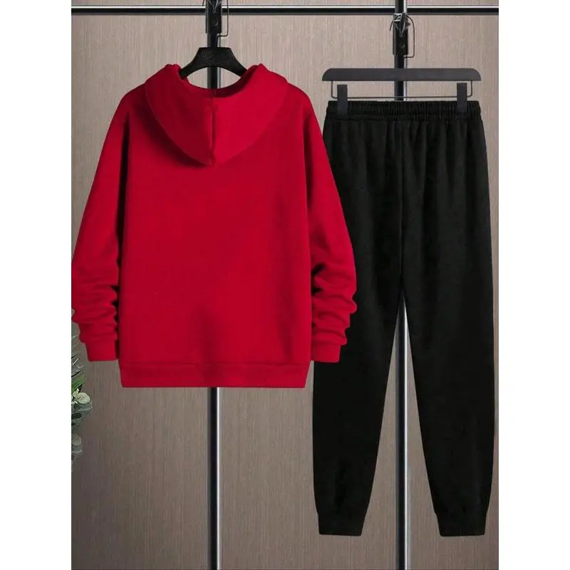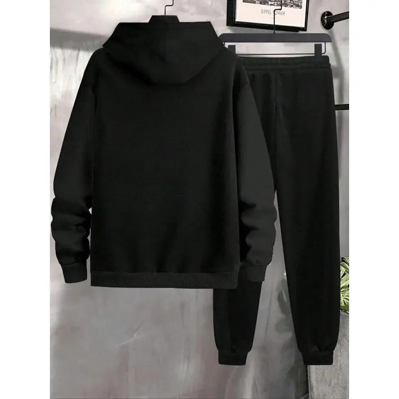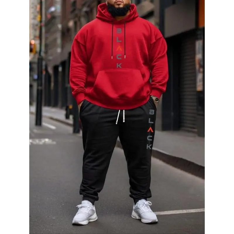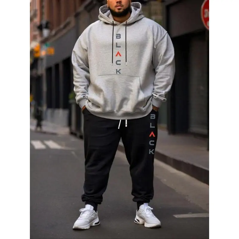 【PlusSize】LetterPrintZipUpHoodie&SweatpantsSet,CasualLongSleeveHoodedSweatshirt&JoggerPants,Men'sTwo-pieceOutfitsforFall&Winter