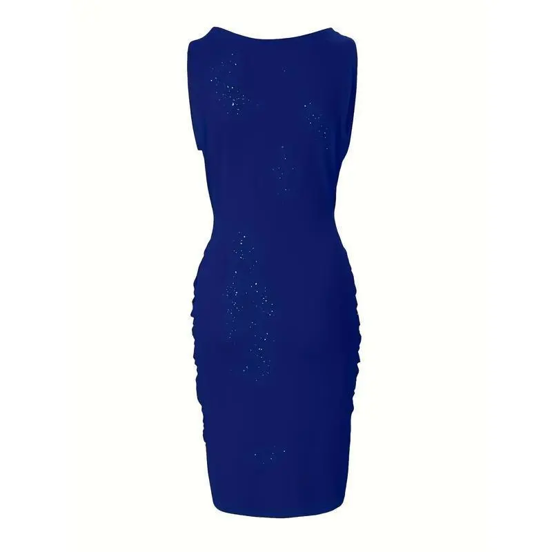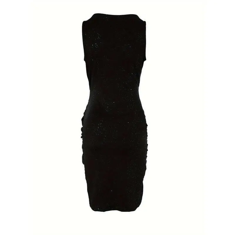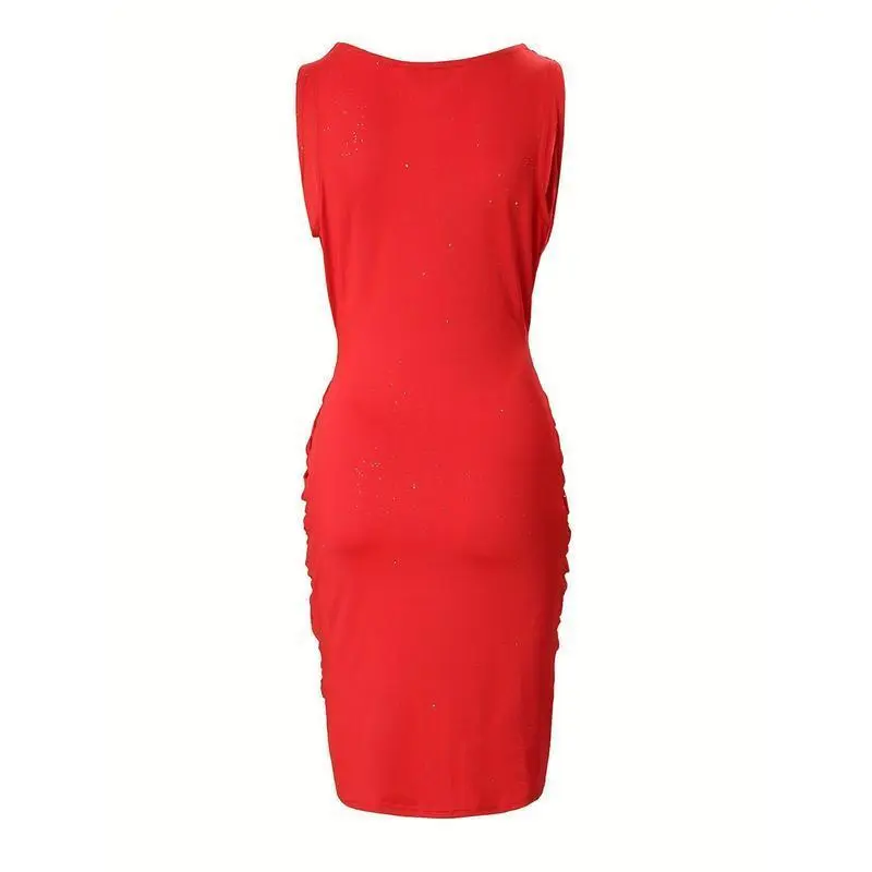 [Sequined Bodycon Dress] Red Sequined Bodycon Dress - Elegant V-Neck, Ruched, Polyester & Spandex Blend - Machine Washable, Perfect for Parties & Banquets
