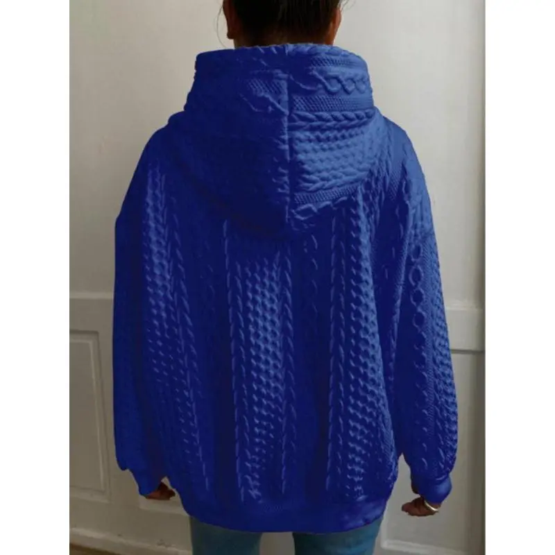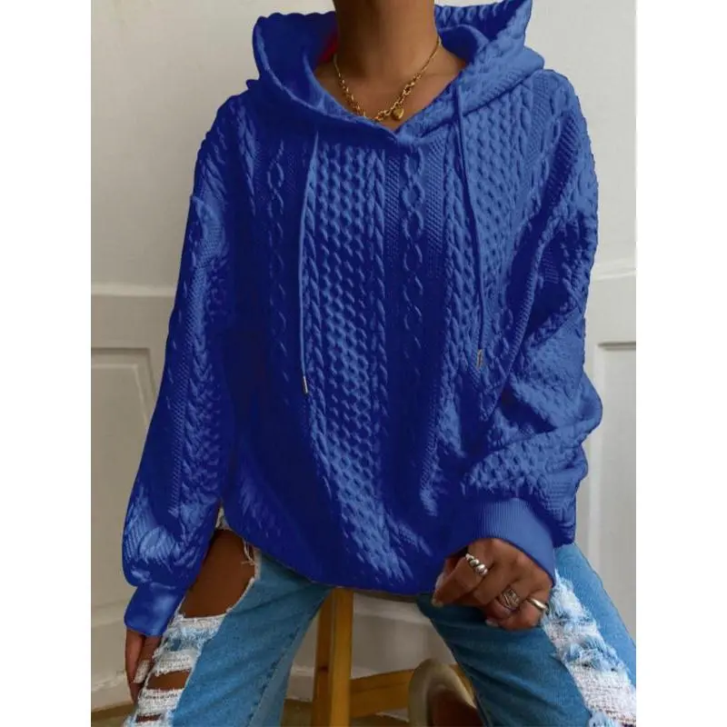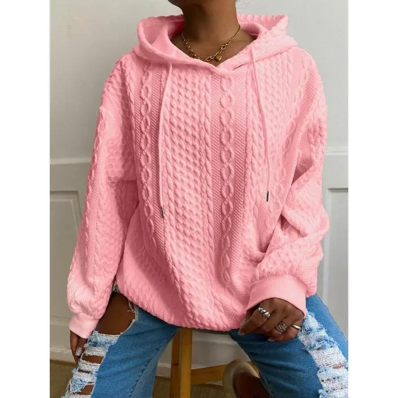 [Adaptive Fit]: The loose-fitting structure caters to all body types, ensuring a flattering silhouette that promotes ease of movement throughout the day. [Textured Fabric]: Crafted with a unique textured jersey elastane, this hoodie offers a distinctive look while providing a soft touch against your skin. [Practical Design]: Equipped with a drawstring, the hood adds functionality while allowing for an adjustable fit to protect against varying weather conditions. [Durable Care]: This garment is machine washable, making it easy to maintain and ideal for everyday wear without worrying about delicate handling. [Seasonal Adaptation]: Perfect for spring and fall, this long-sleeved hoodie provides warmth while remaining breathable, adapting well to fluctuating temperatures.