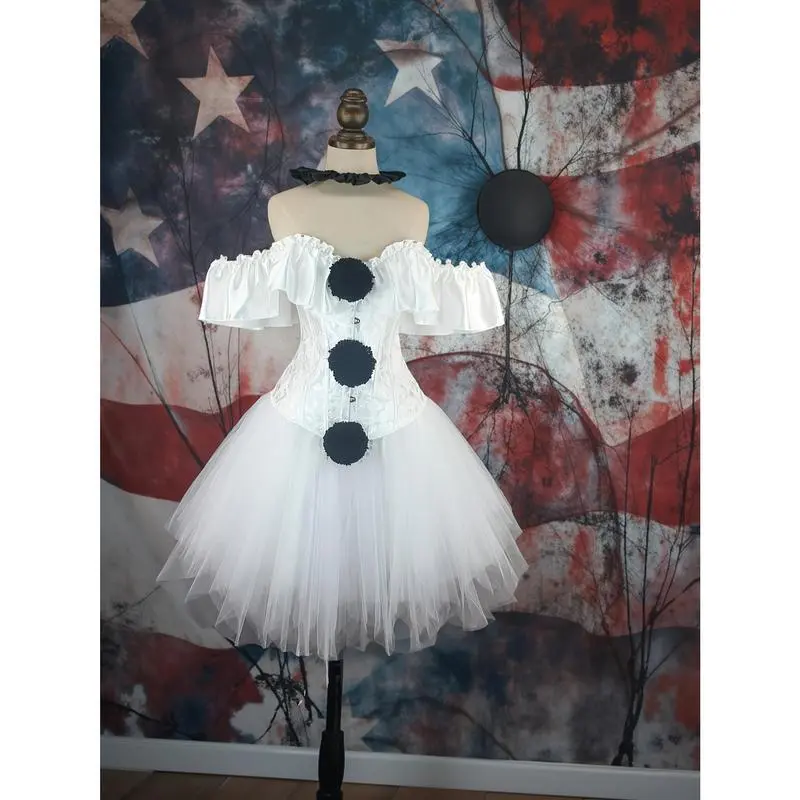 BlackandWhiteClownCostumeSetforHalloween,CORSET,TUTUSkirt,andScarfThree-PieceOutfit