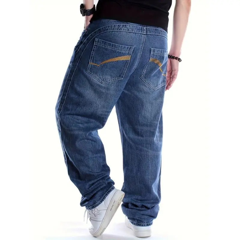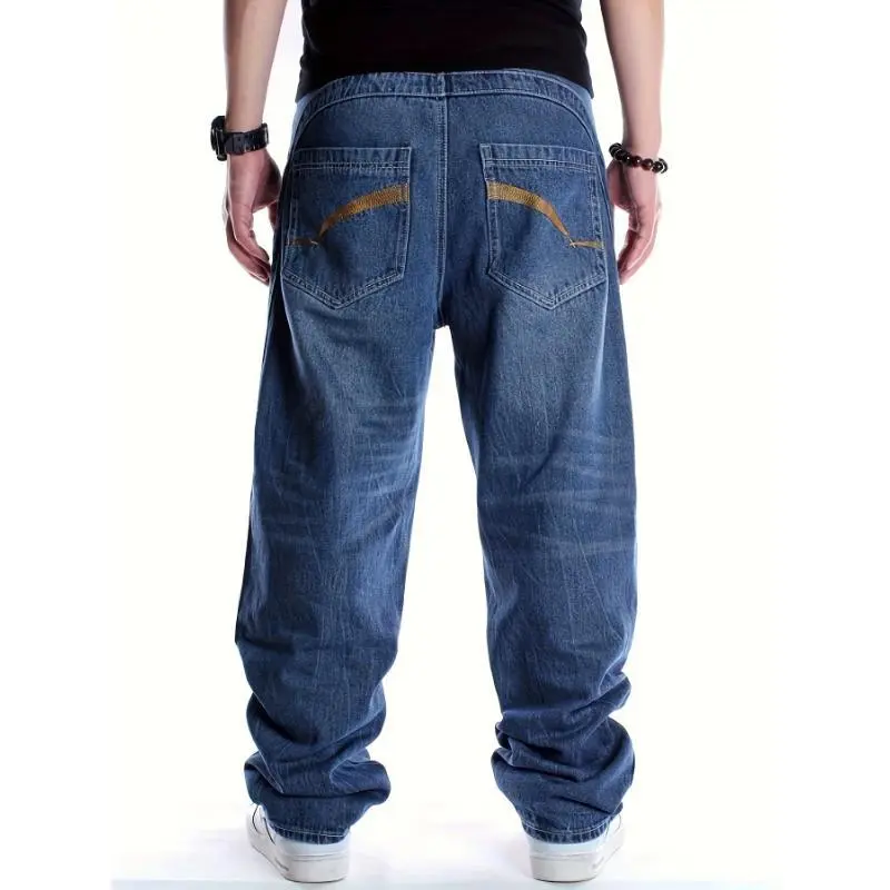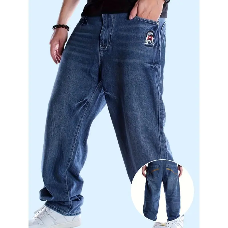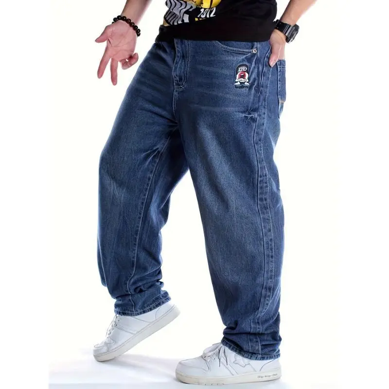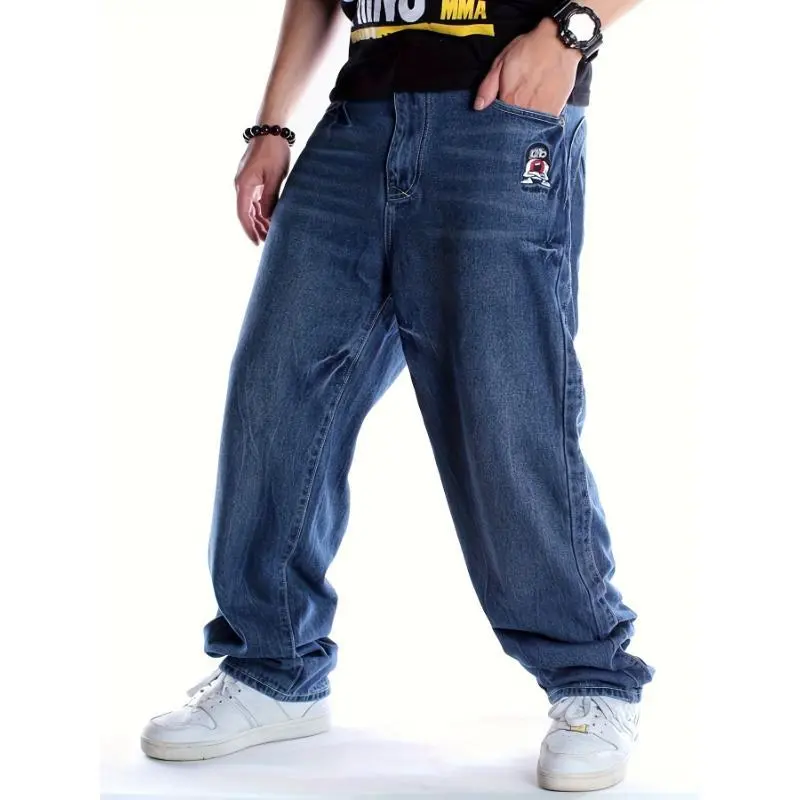 Fashion men's wear�� Men's Hip Hop Jeans - Loose Fit, Embroidered Detail, Straight Leg Denim Pants for Street Dance & Skateboarding, Machine Washable, All-Season Wear, Skateboarding Jeans|Sporty Look|Washed Denim