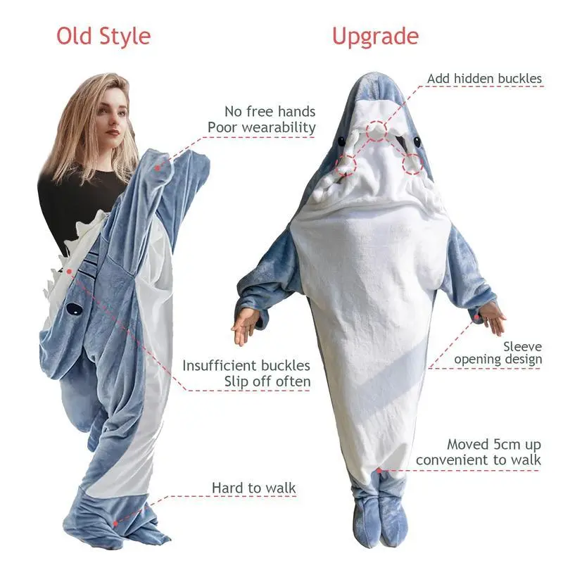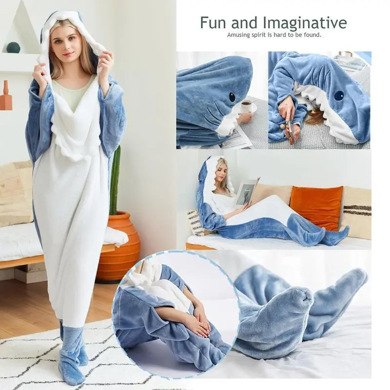 WearableSharkBlanketHoodieOnesieAdult&SleepingBagCozySoftCostume
