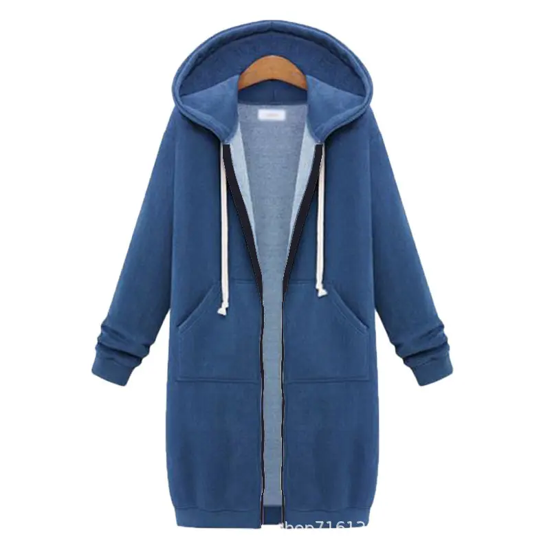 2024Women'sAutumnWinterThickenHoodiesParkasLooseHoodedJacketsZipperPocketMaxiSizeSweatshirtSportsDressesOutwear