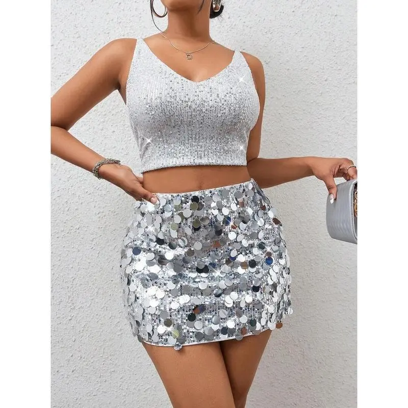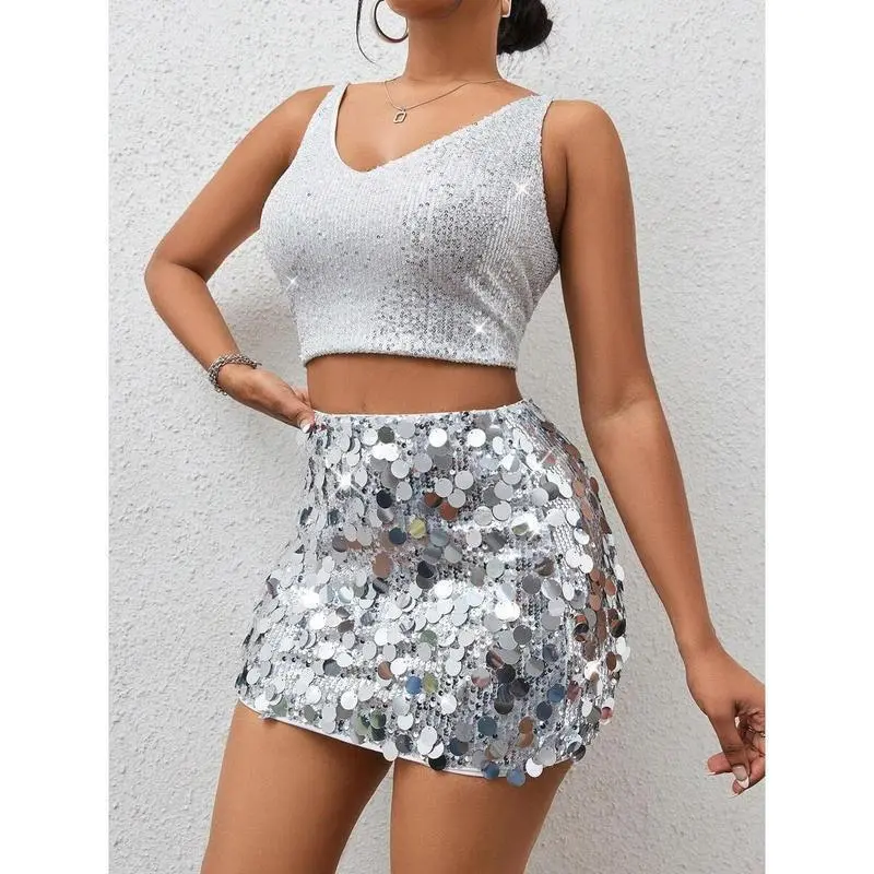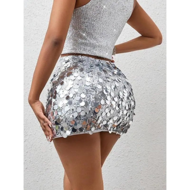 Sequin Mini Bodycon Skirt For New Year Holiday Party Clothes