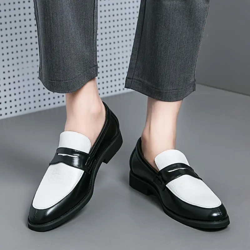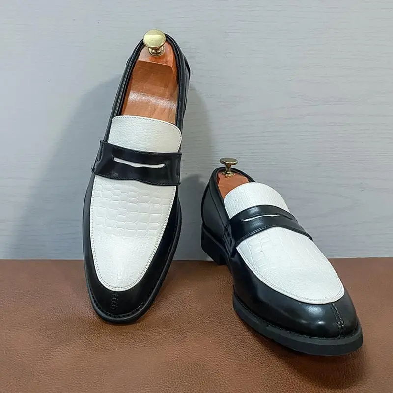 Men's Two-Tone Loafers Casual Boat Shoes Soft Leather Slip-On Flat Sole Black & White Tactical Walking Footwear for Men and Boys