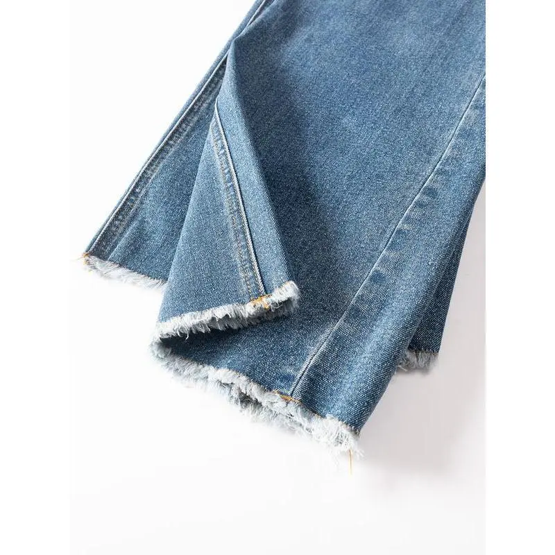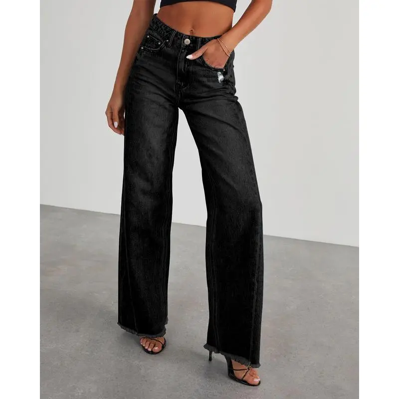 Women's Fashionable Cute Wide Leg Jeans Flowy High Waisted Strechy Raw Hem Denim Pants(2 or 3 for fs) Womenswear Bottom