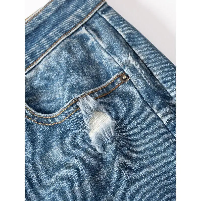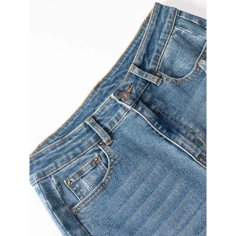 Frayed Seam Washed Low Rise Straight Leg Jeans