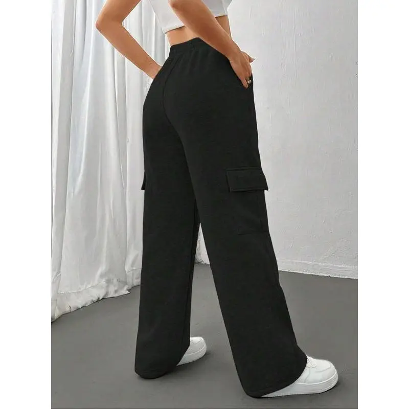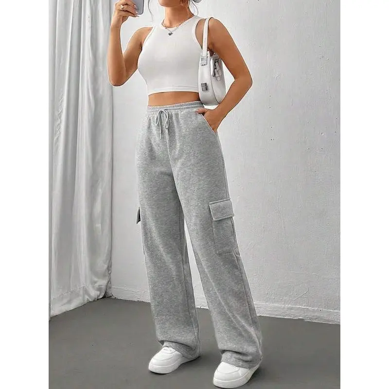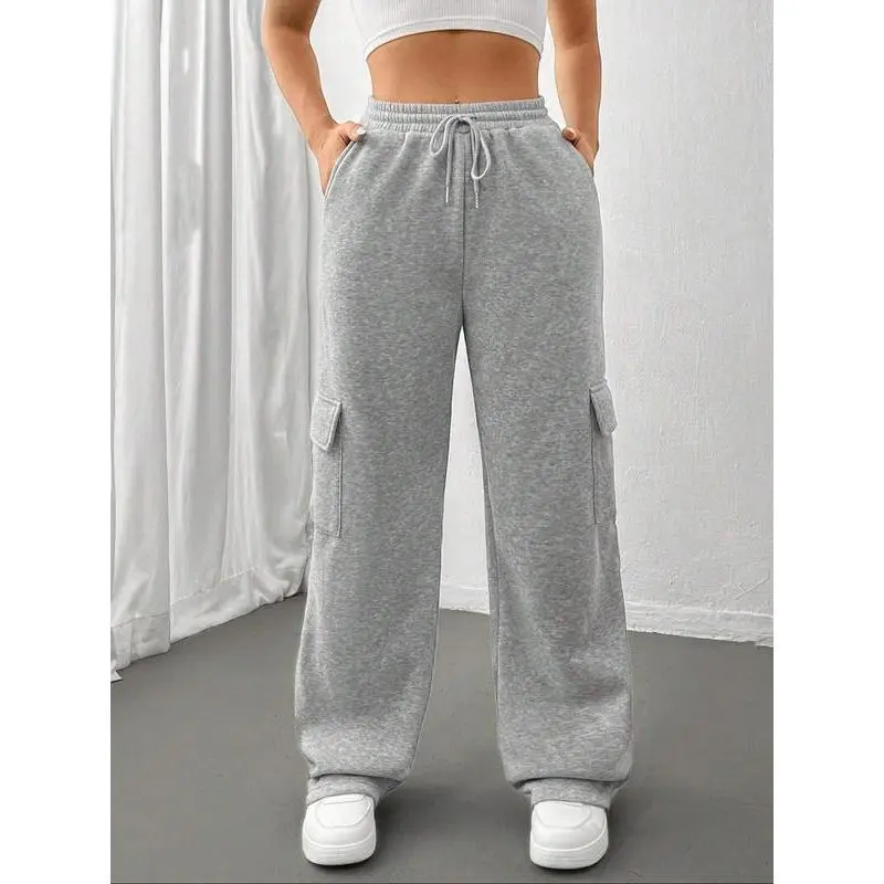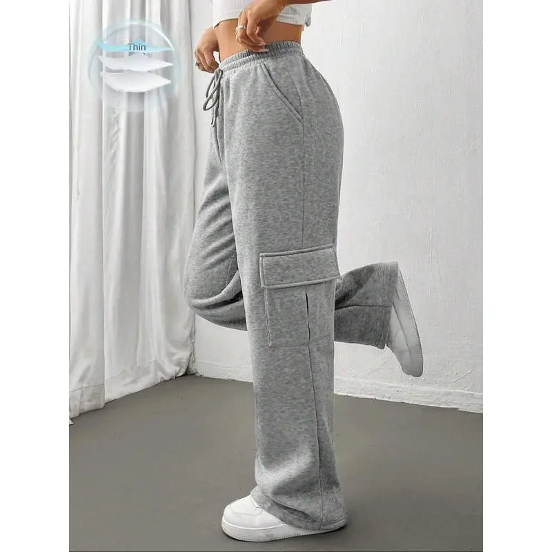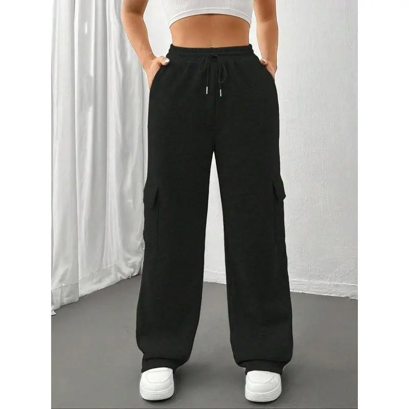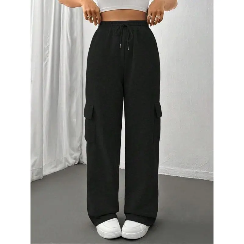 Women's Drawstring Pocket Cargo Pants, Side Large Pockets Design, Comfortable Fashion Pants for Daily Wear, All Seasons Clothing