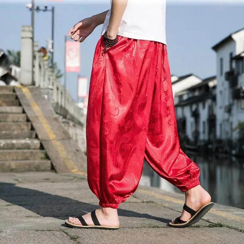 2025 Outdoor Pants For Men ice Silk Dragon Dark Flower Loose Bloomers High Quality Wide Leg Casual Trousers Male Fashion