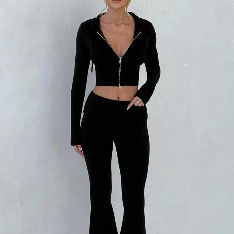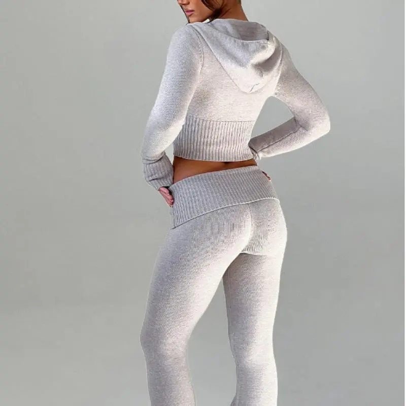2PieceKnitSetsWomen'sTrendySlimFitHoodedSweatsuitsetscasualloungewearsportyfashiontwopieceoutfitautumnwintertracksuit