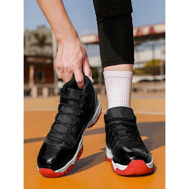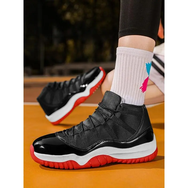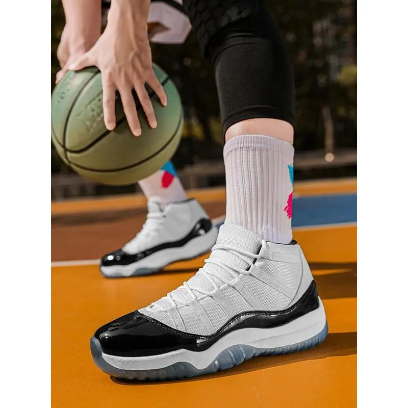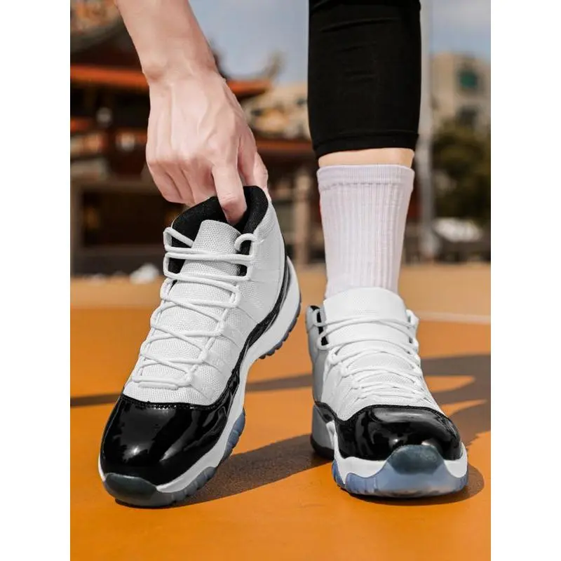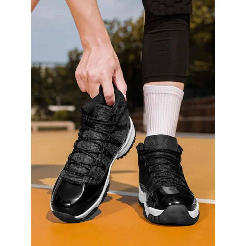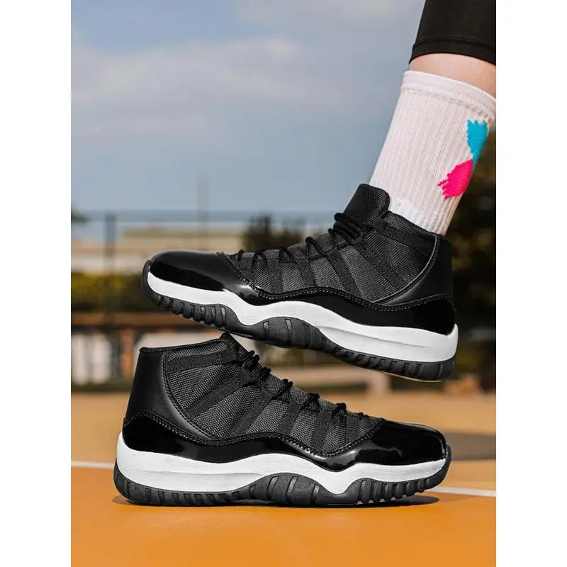 Unisex High-Top Basketball Shoes, Retro Sport Style, Shock Absorbing Sole, PU Leather Patchwork Design, All Seasons Wear