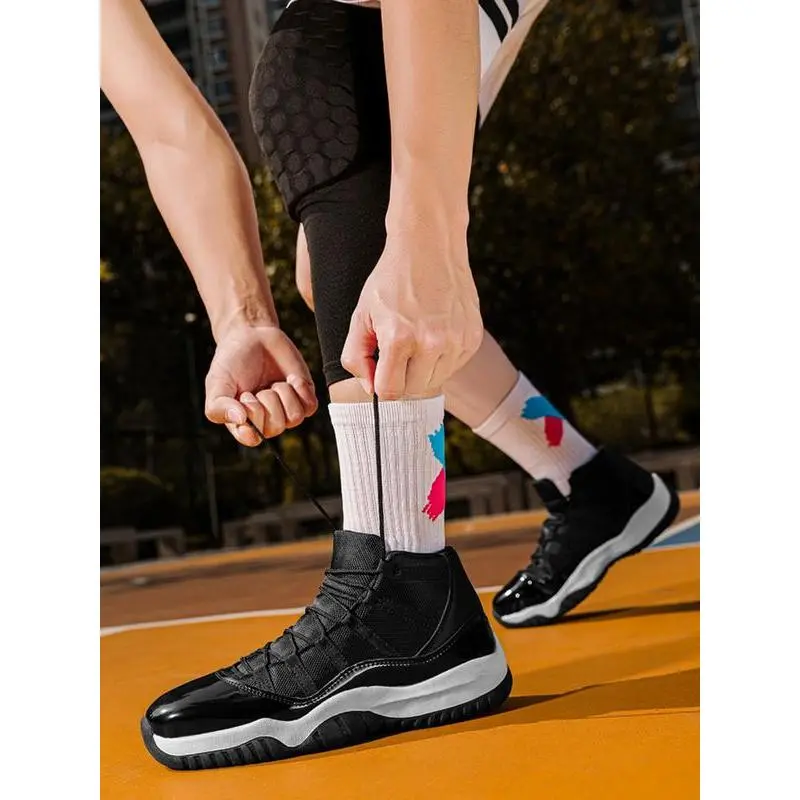 【High-top design】: Featuring a high-top structure that provides additional ankle support during vigorous basketball activities. 【Retro aesthetics】: The retro sports style incorporates a unique look, making it a standout option on and off the court. 【Shock-absorbing sole】: Equipped with a cushioning rubber base that enhances impact absorption for improved performance. 【PU leather upper】: Constructed with durable PU leather for a stylish finish that also withstands regular use. 【All-season wear】: Designed for all seasons, offering versatility in usage for various weather conditions.