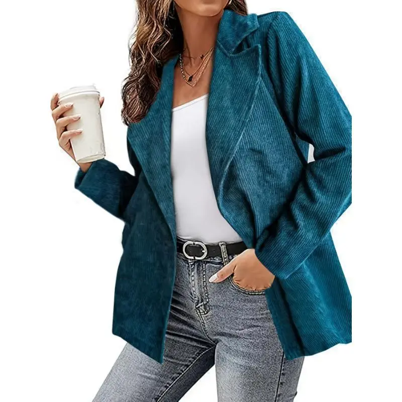 long sleeve suit jacket Plus Size, The New Autumn And Winter Women's Blazer Is Made Of Corduroy Fabric, Warm And Comfortable, Suitable For Going Out For Dates And Parties
