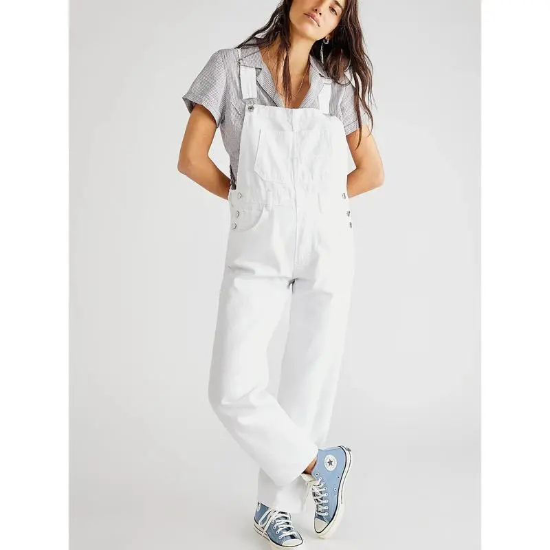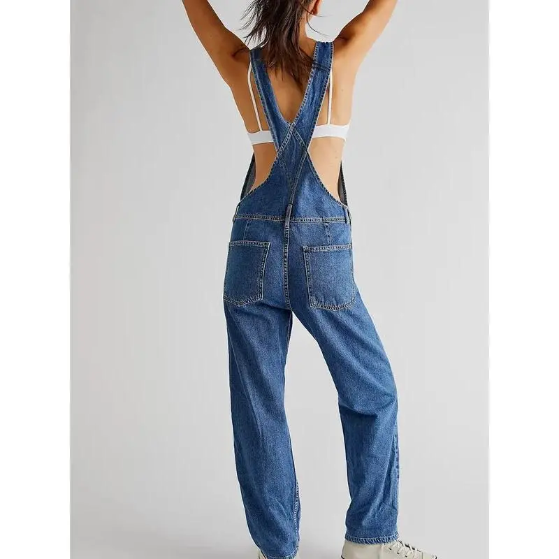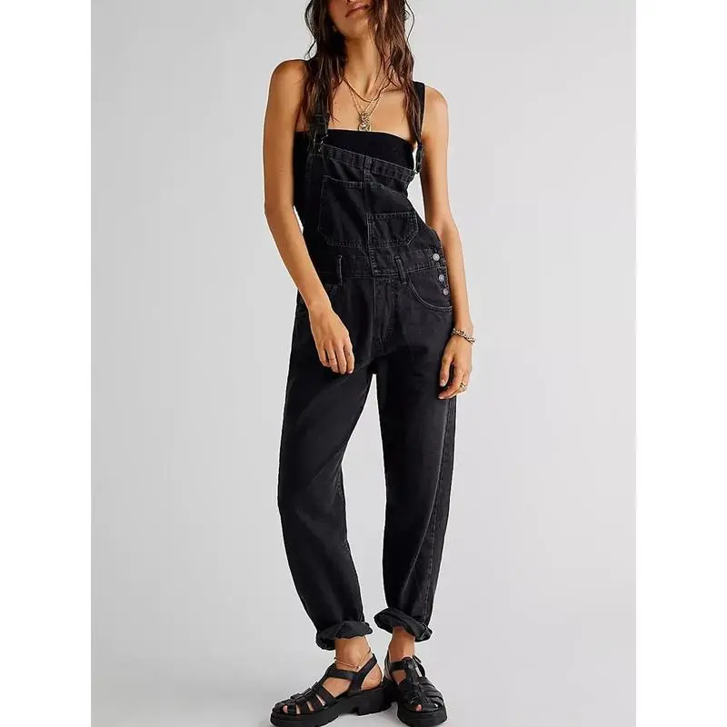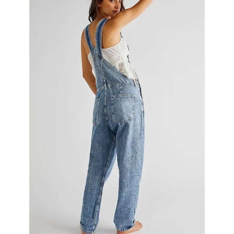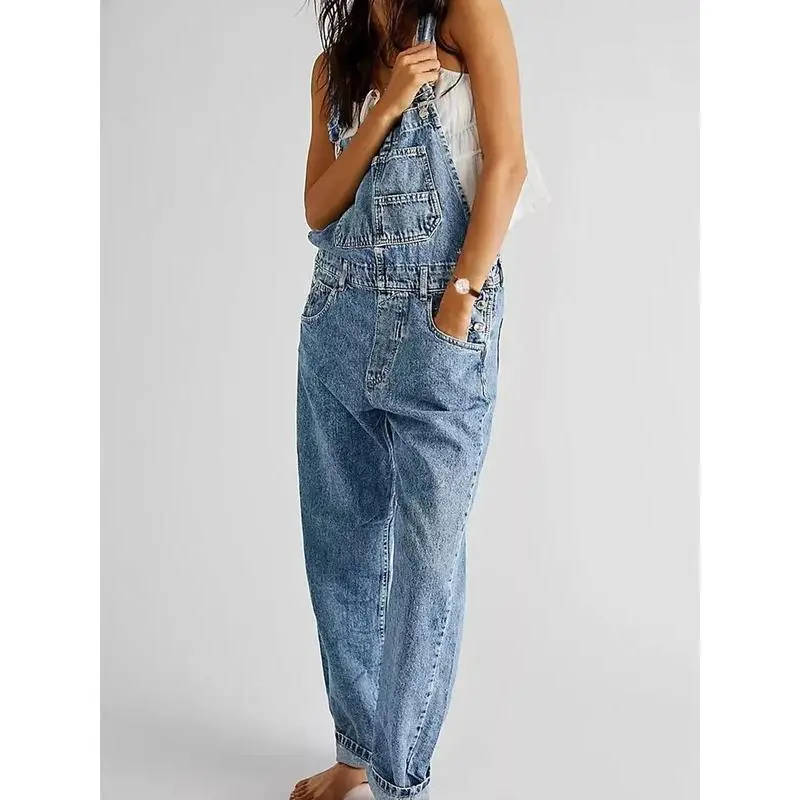 FashionDenimOverallsforWomenLooseFitClassicBibCasualJeanStretchyDenimOverallJumpsuitTaperedLegJeanPants