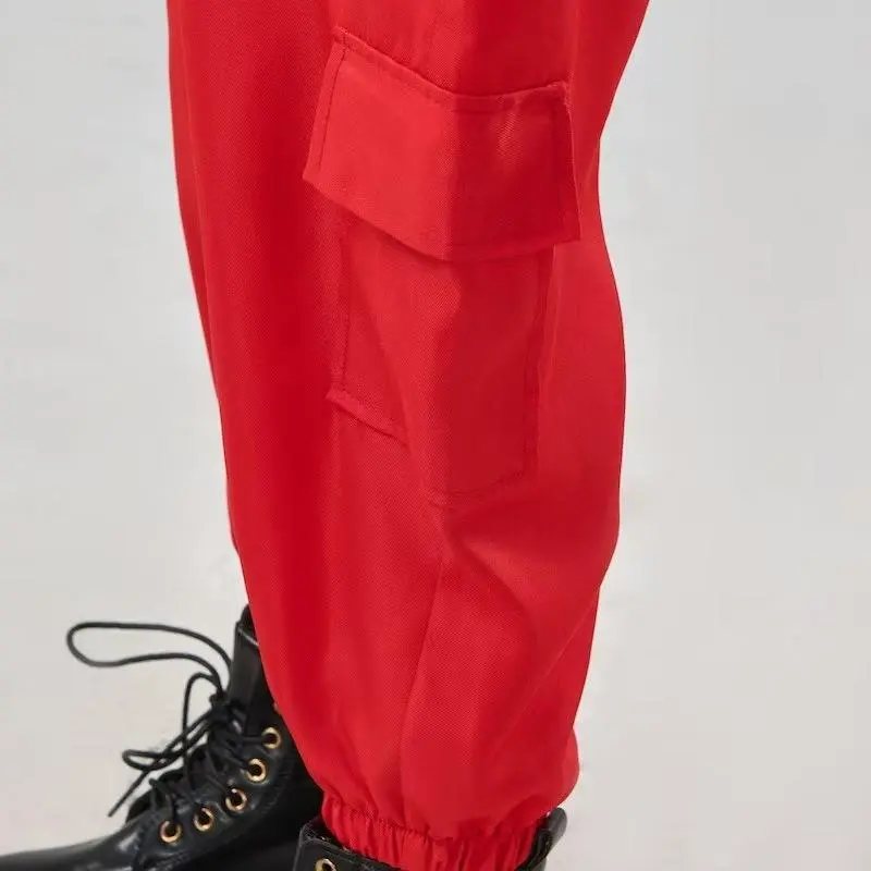 Red jumpsuit+belt+glove+Circular mask