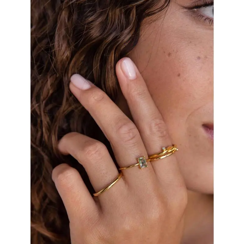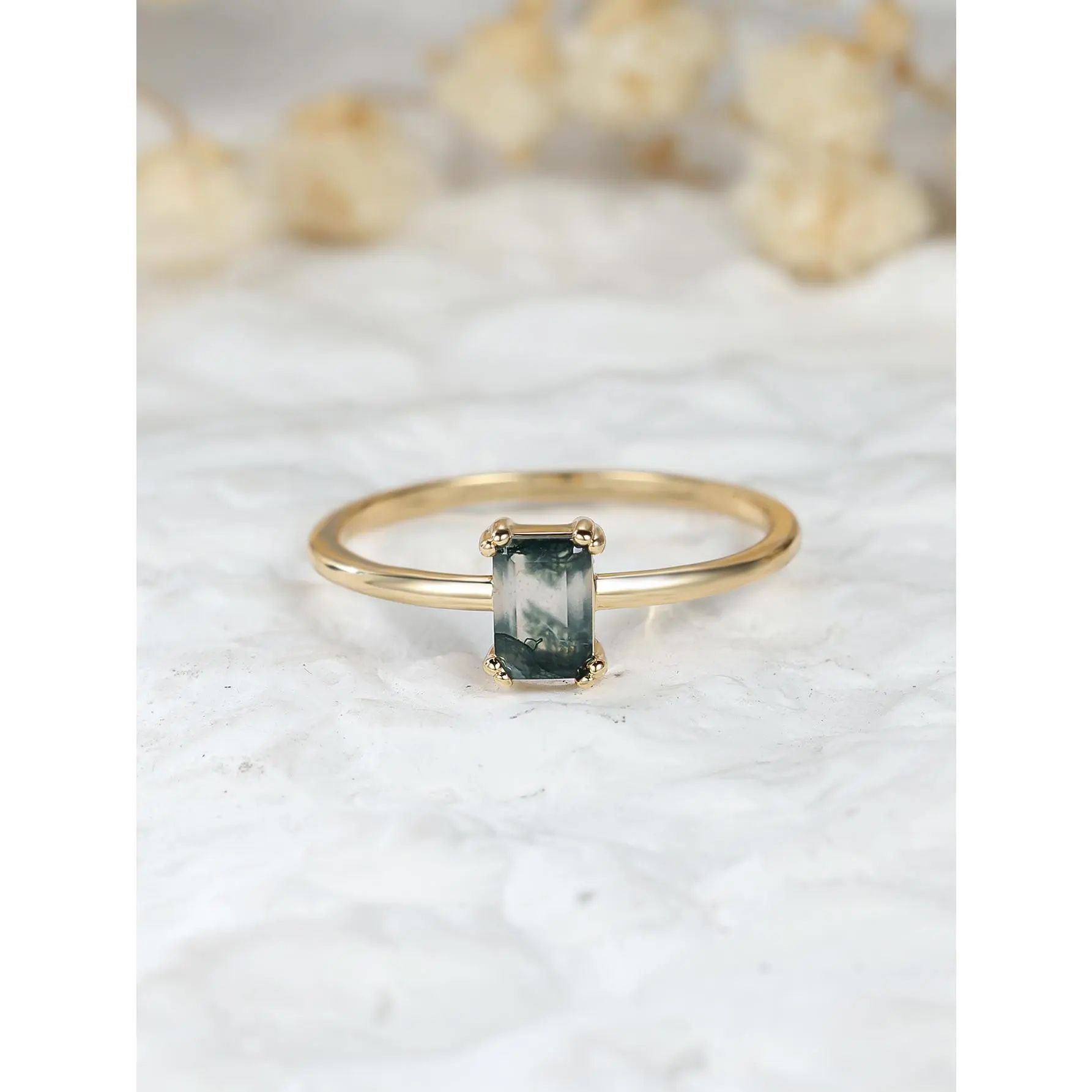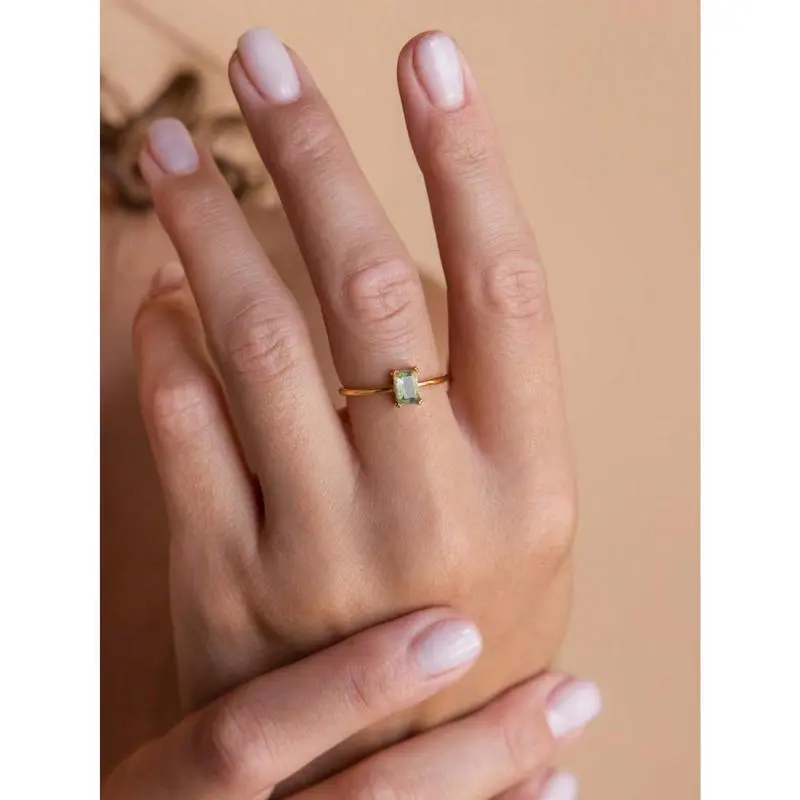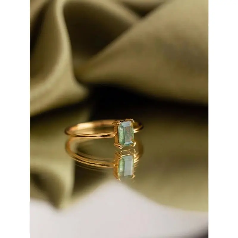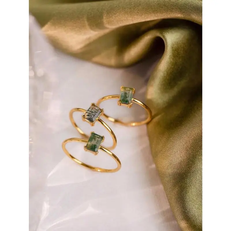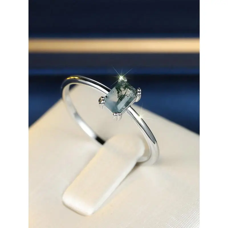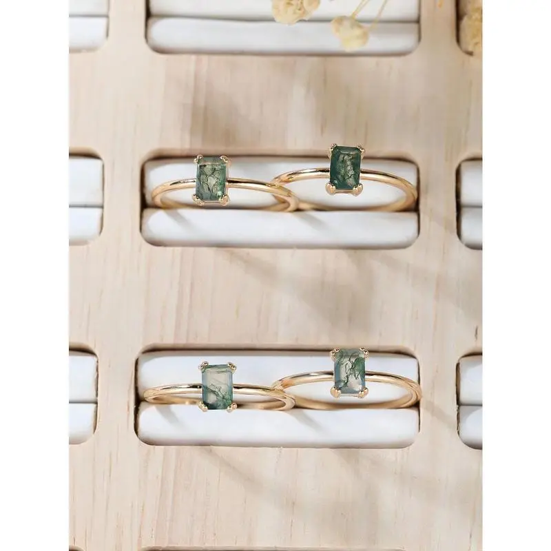 1pc Rectangle Natural Moss Agate Ring Promise Ring For Women Girlfriend Engagement Birthday Gift Daily Jewelry Gifts (Natural Stone Color Is Random)