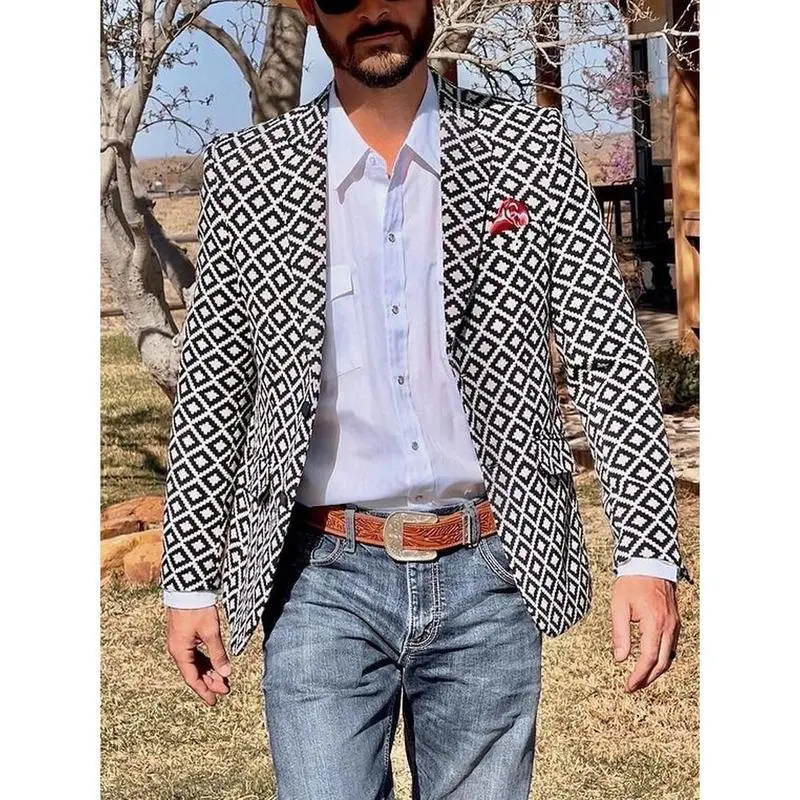 2025 Men's Slim Fit Casual Blazer Western Cowboy Style Denim Jacket for Streetwear Menswear Suit HOT