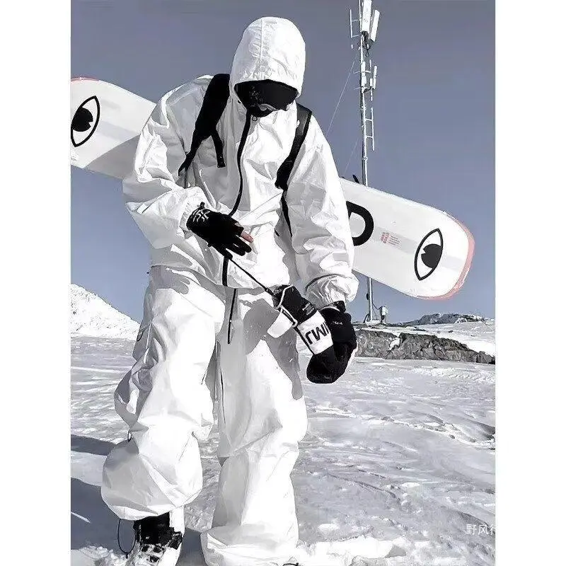 White Single and Double Board Fleece-Lined Thickened Ski Pants for Men Winter Waterproof Three-in-One Softshell Pants Motorcycle Windproof Cold-Resistant Pants