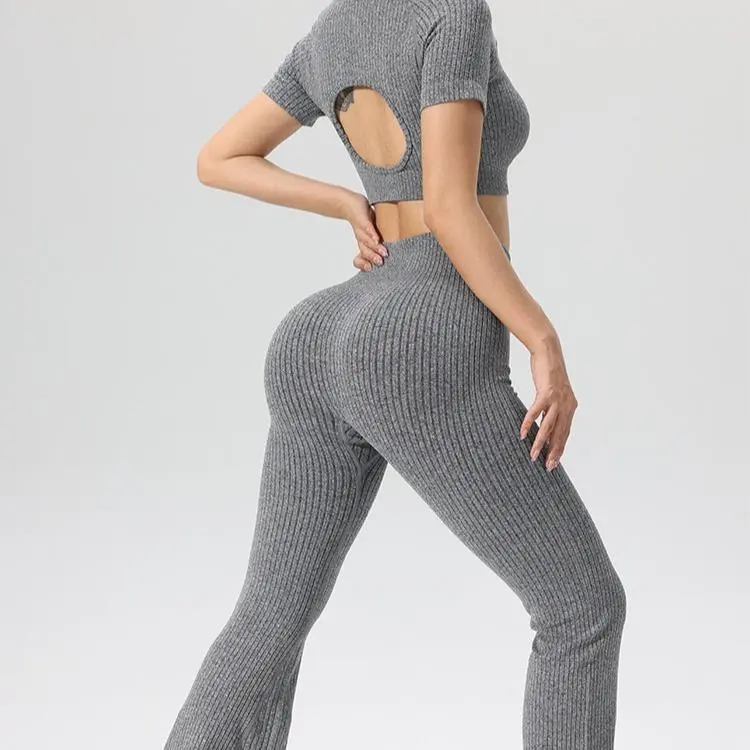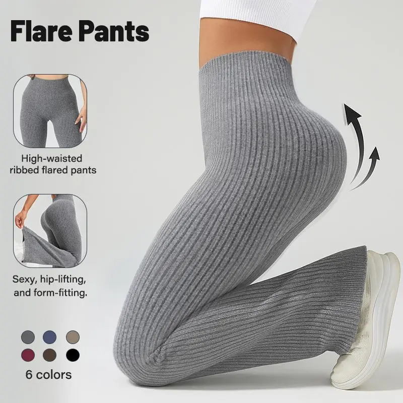 Ribbed Leggings for Women High Waisted Tummy Control Flare Leggings Stretch Soft Yoga Pants Butt Lifting bell bottom sweatpants