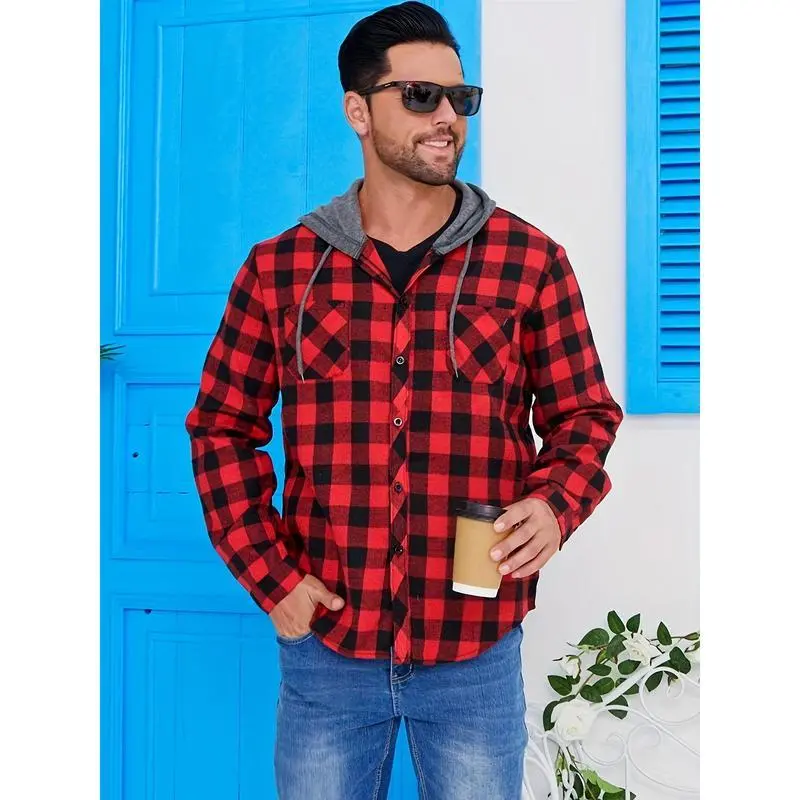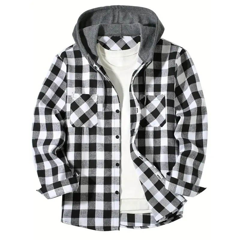 Weaving Method:WovenComposition:Polyester,30% RayonStyle:Casual,HoodedSeason:All SeasonsSleeve length: long sleevePattern:PlaidMaterial: Polyester Material: PolyesterComposition: 70% Polyester,30% RayonSleeve Length: Long SleeveDetails: ButtonSheer: NoFabric: Non-StretchCollar Style: HoodedOperation Instruction: Machine wash, do not dry cleanFit Type: RegularWeaving Method: WovenPrinting Type: Random PrintingStyle: CasualPattern: PlaidSeason: All PJ 2796369Origin: Fujian,China