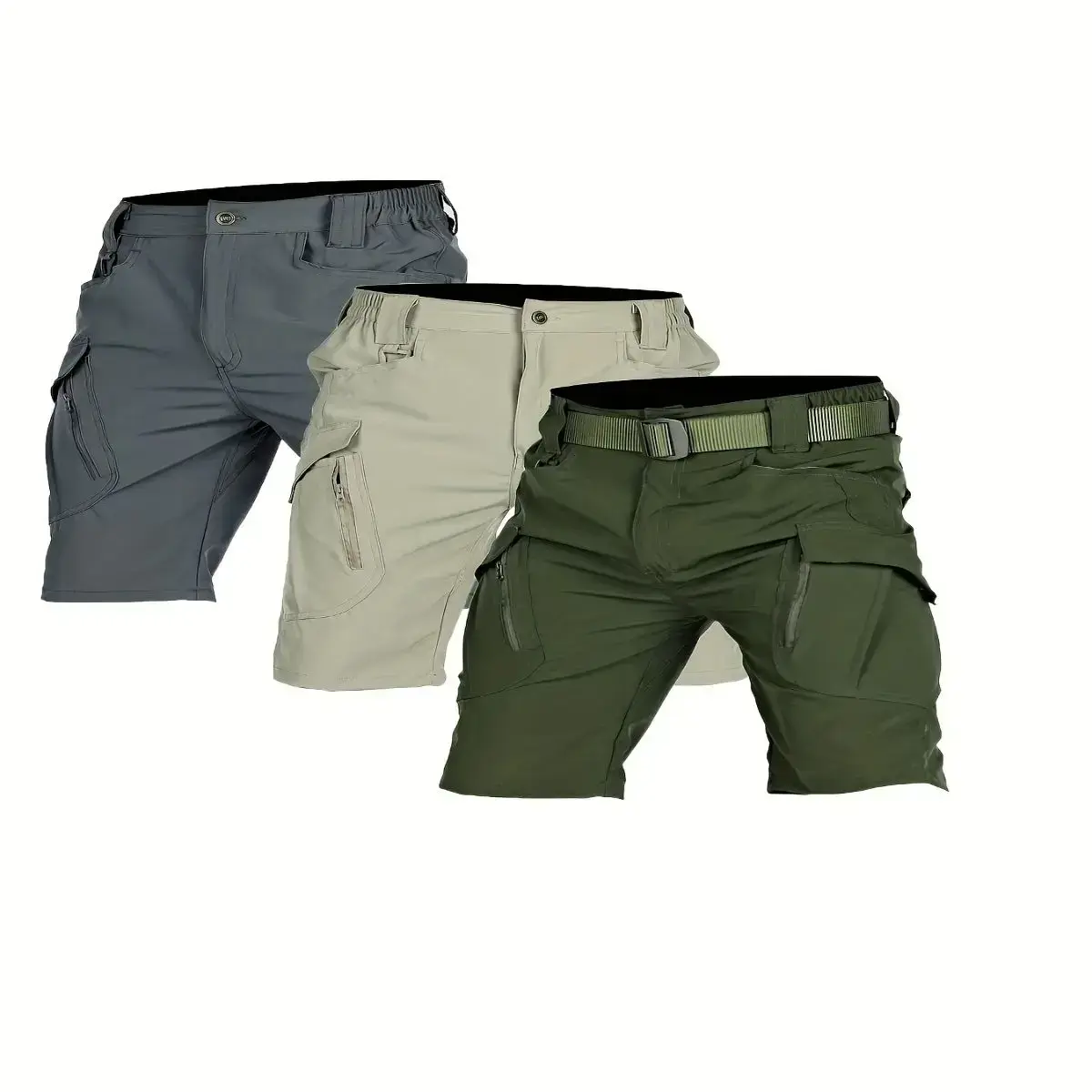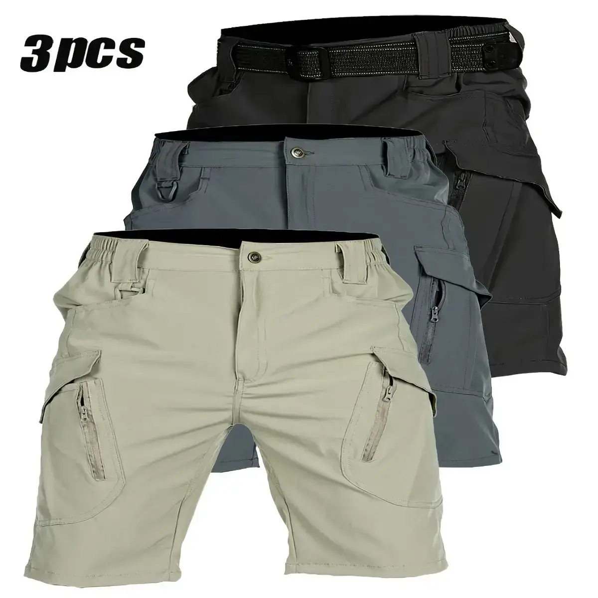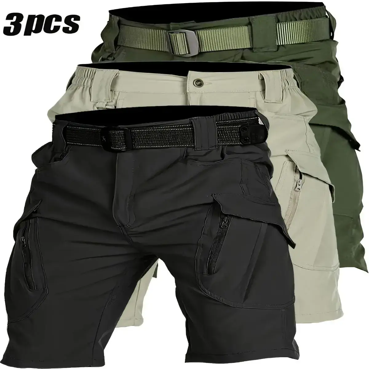 [3pcs Quick-Dry Shorts] 3pcs Men's Tactical Shorts | Lightweight Breathable Elastic Waist Outdoor with Multiple Pockets Olive Green, Beige & Black for Hiking, Running, Training Casual Wear