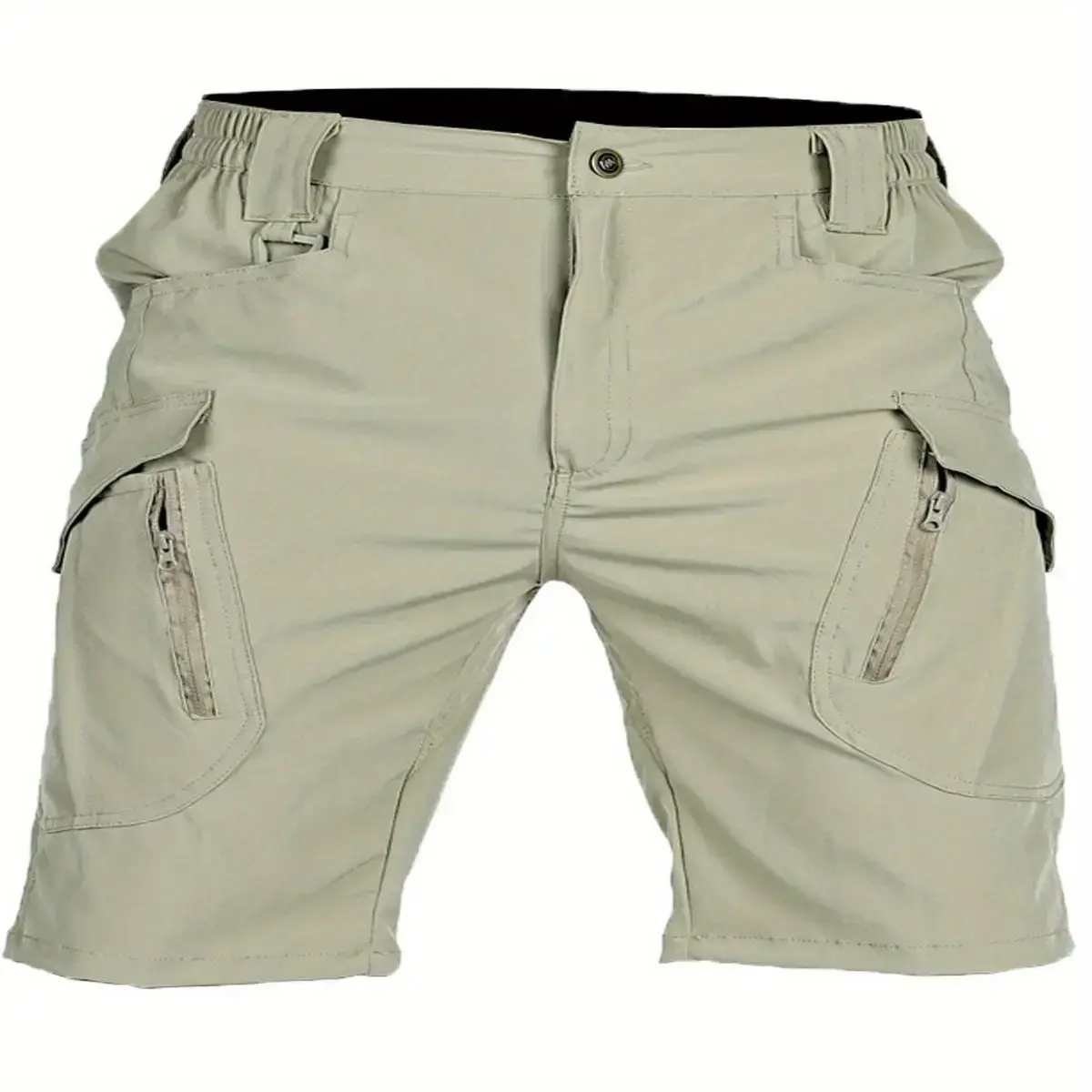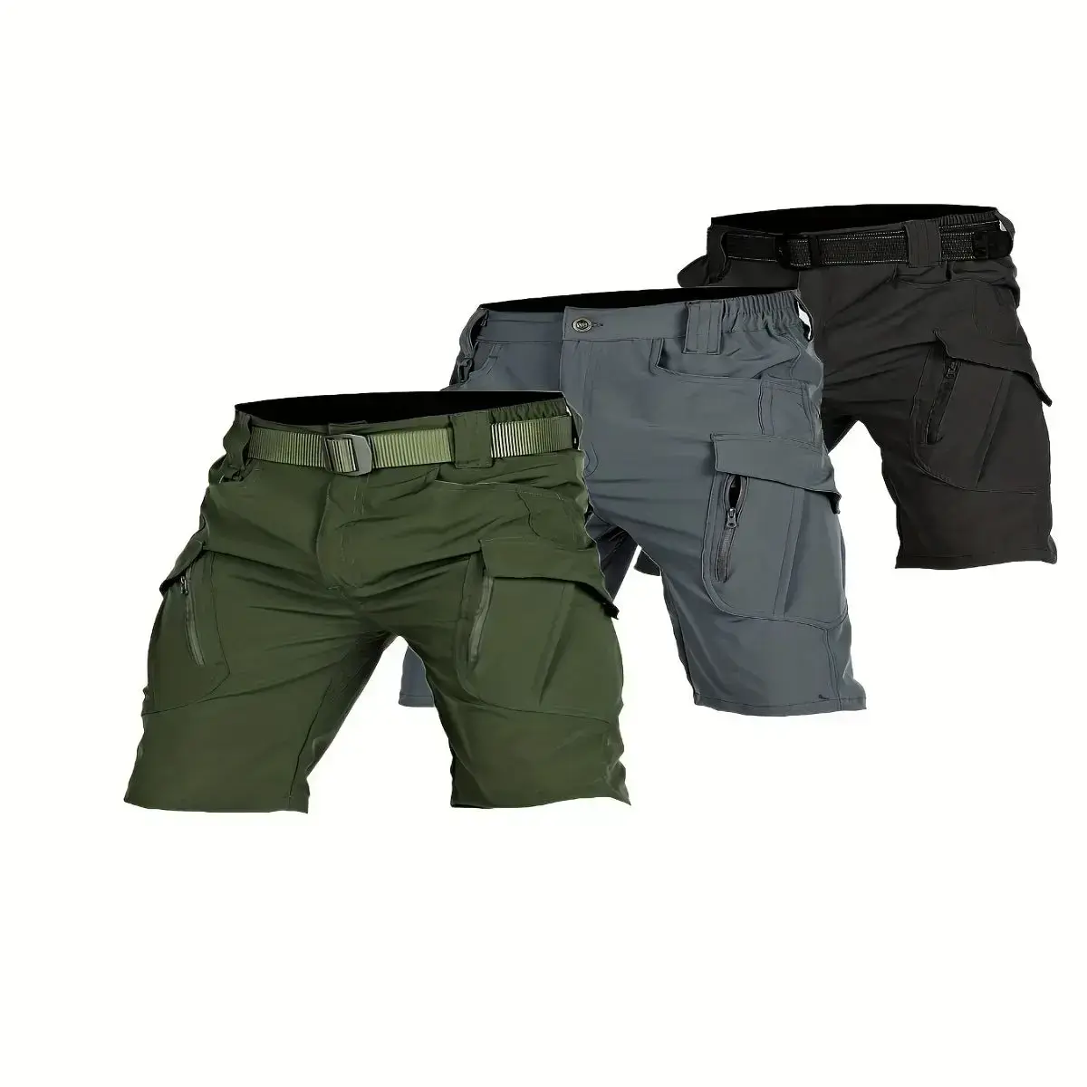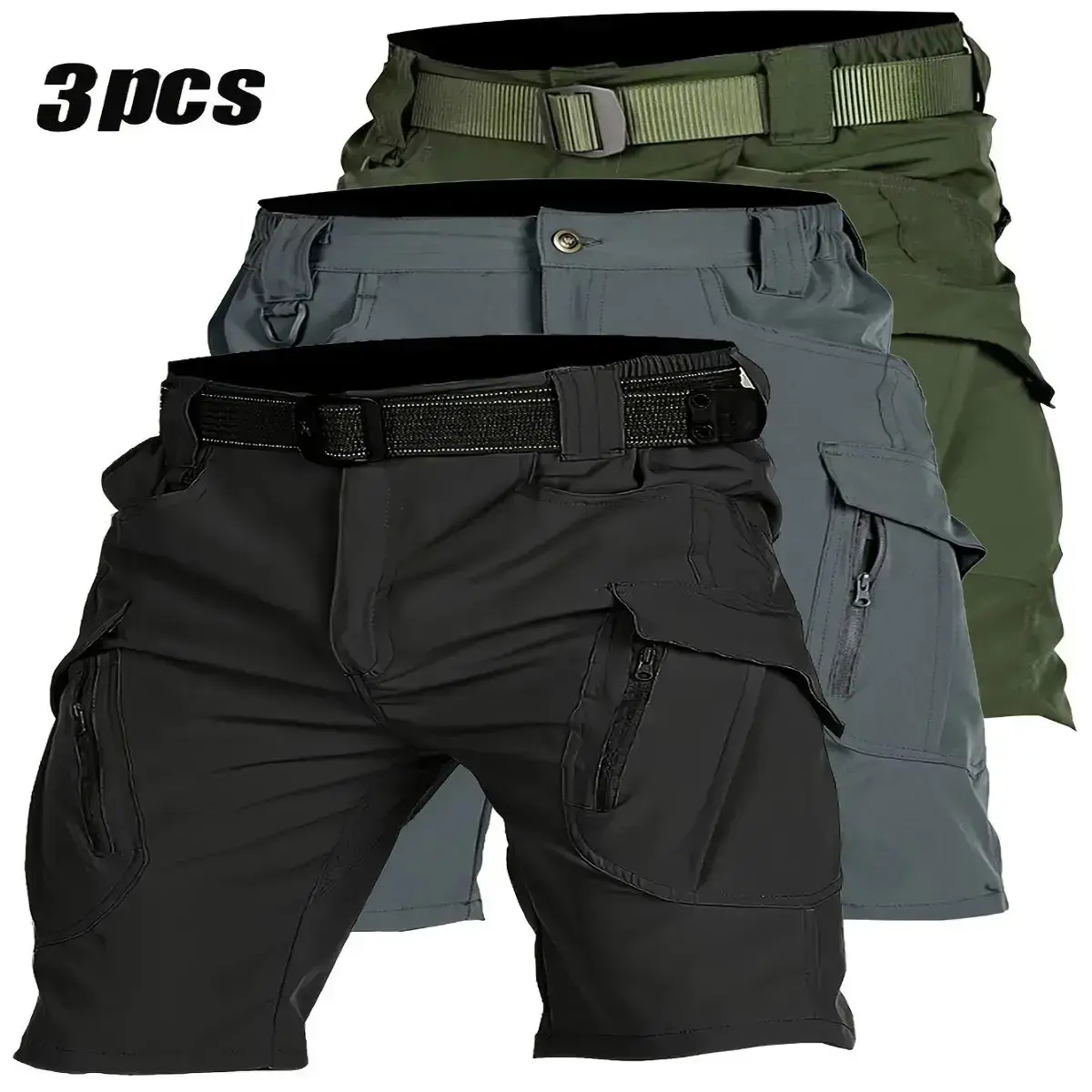 [3pcs Quick-Dry Shorts] 3pcs Men's Tactical Shorts | Lightweight Breathable Elastic Waist Outdoor with Multiple Pockets Olive Green, Beige & Black for Hiking, Running, Training Casual Wear