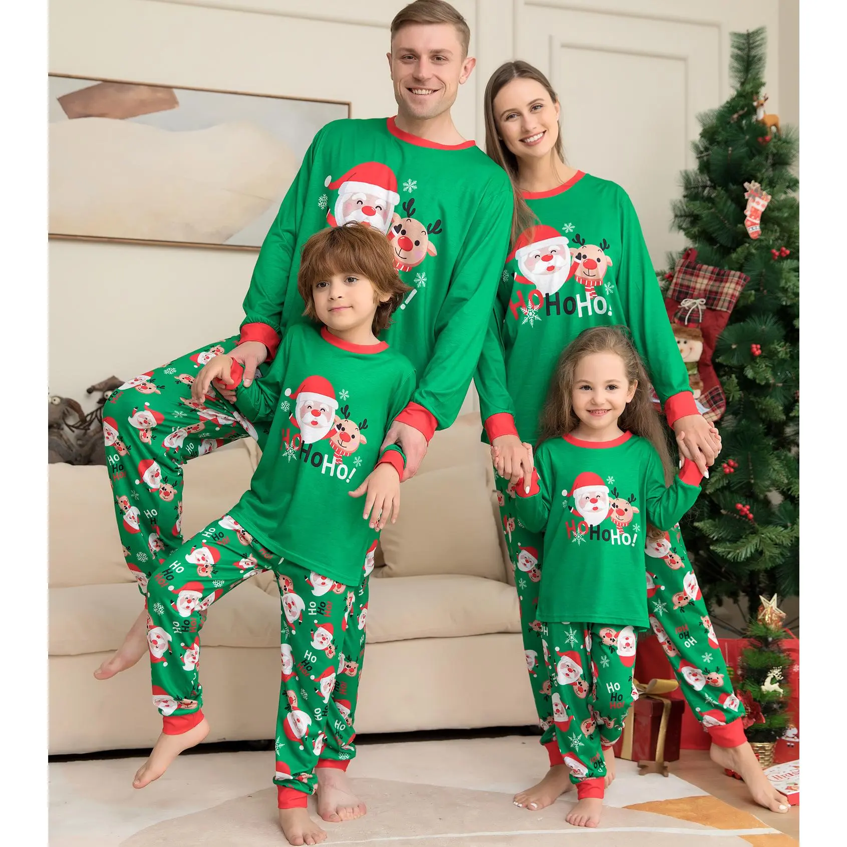FamilyChristmasPajamasSet,ReindeerPrintSleepwearforFall&Winter,CasualHomeWear,FittedThinFabric,ComfortableDailyUse