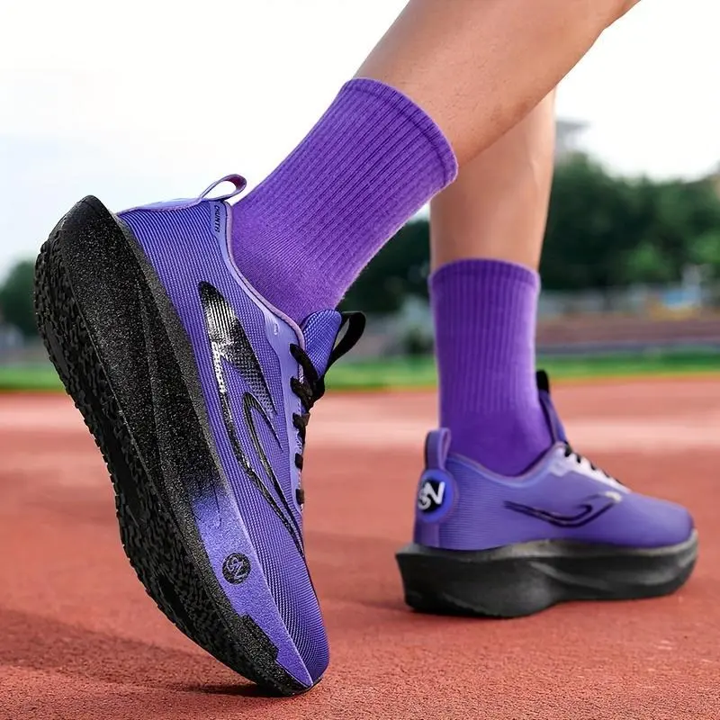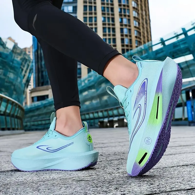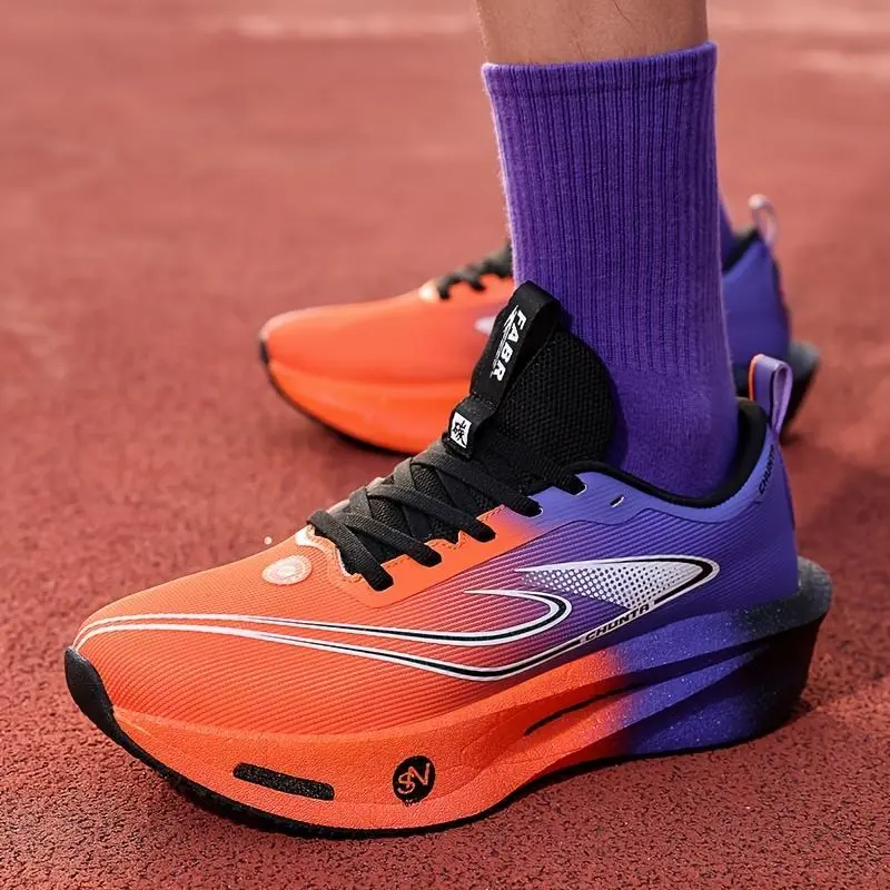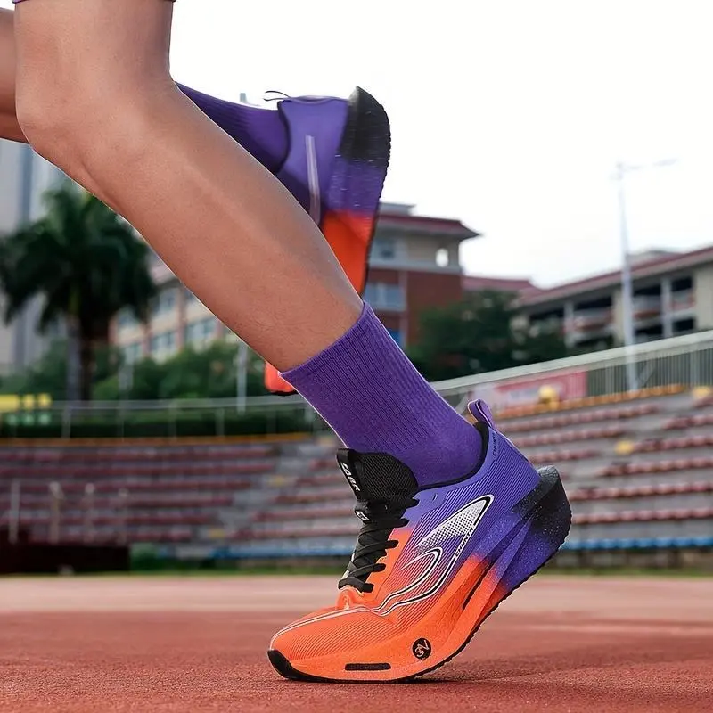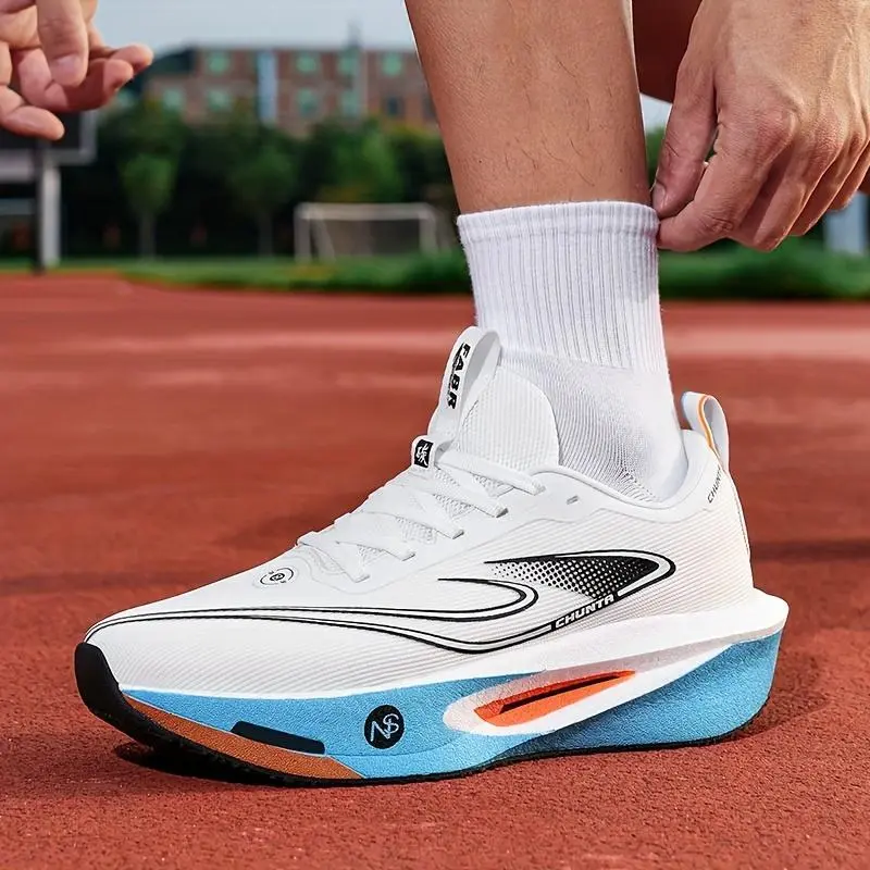 Professional Running Shoes with Carbon Plate Technology - Cushioned Marathon & Gym Shoes, White/Orange Accents - Lightweight TPR Outsole, PU Cushioning - Lace-Up Athletic Footwear for Track, Long Distance, Training - Men, Women, Teens - All