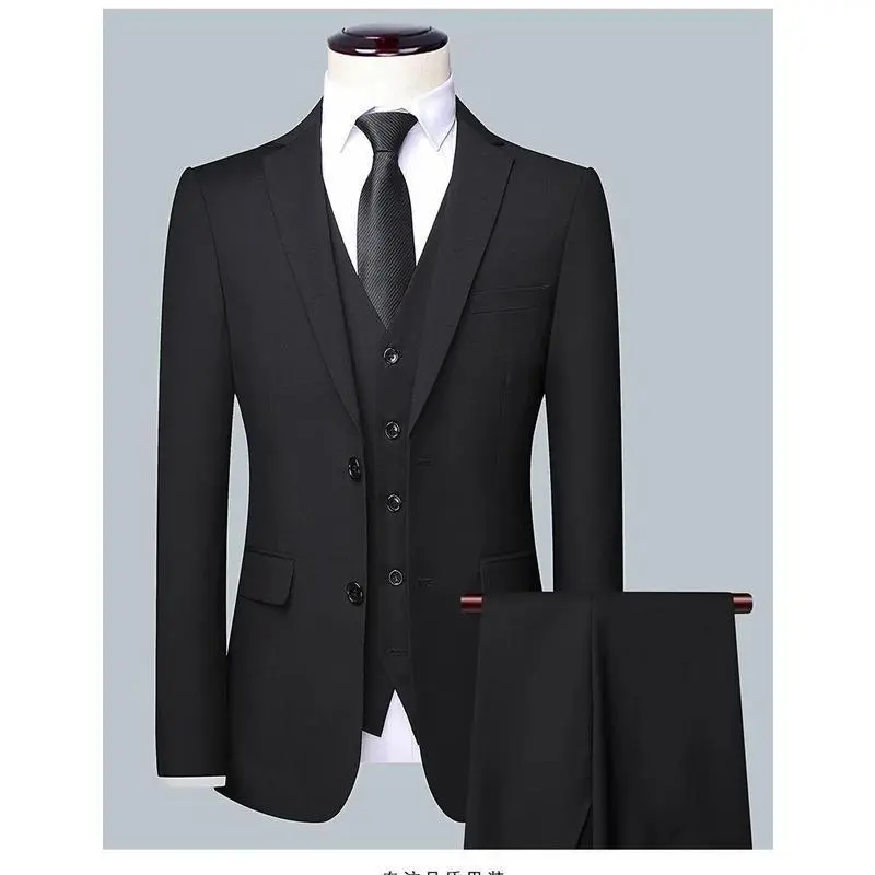 High Quality (Blazer+Waistcoat+Trousers)Men Simple Business Elegant Fashion Job Interview Gentleman Suit Slim 3 and 2 piece Suit
