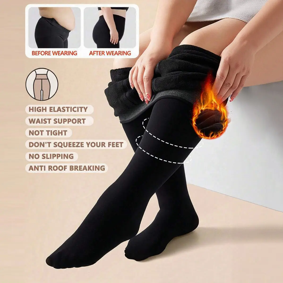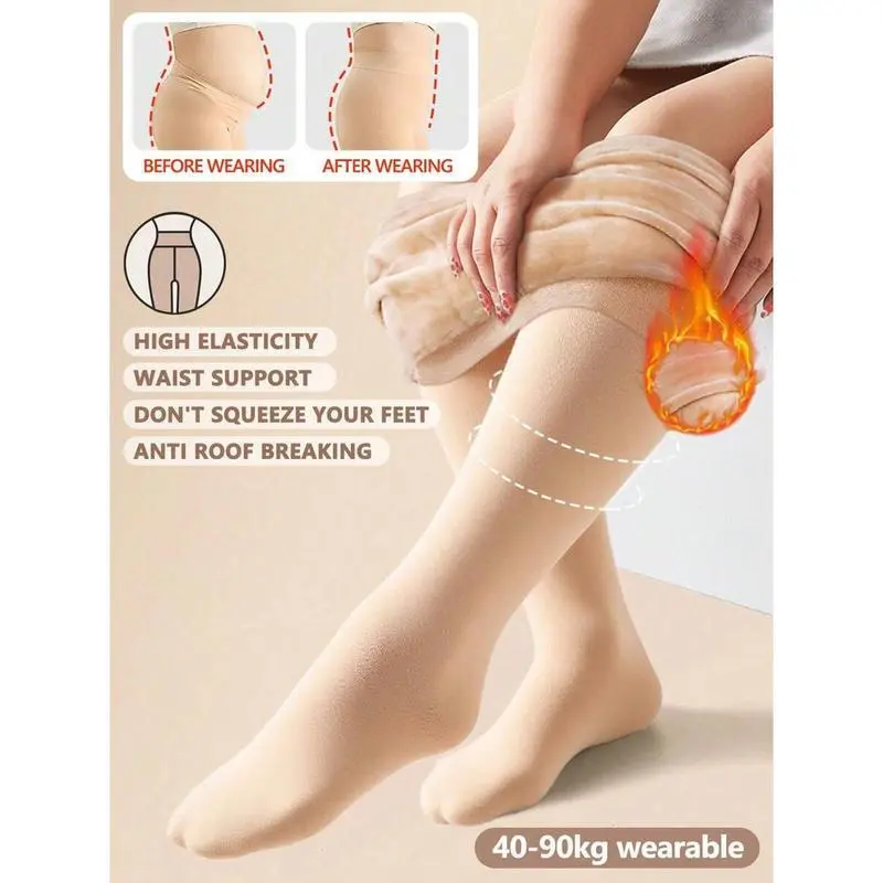HighWaistElasticityThickenThermalTightsLeggingsWomenPlusSizePantyhoseWinterFleeceVelvetThermoStockingsHighWaistElasticSlimSexyTranslucentSimilarToPantyhosePantsSocksCasualEverydayApricotKnittedFabric40-90kgWearable
