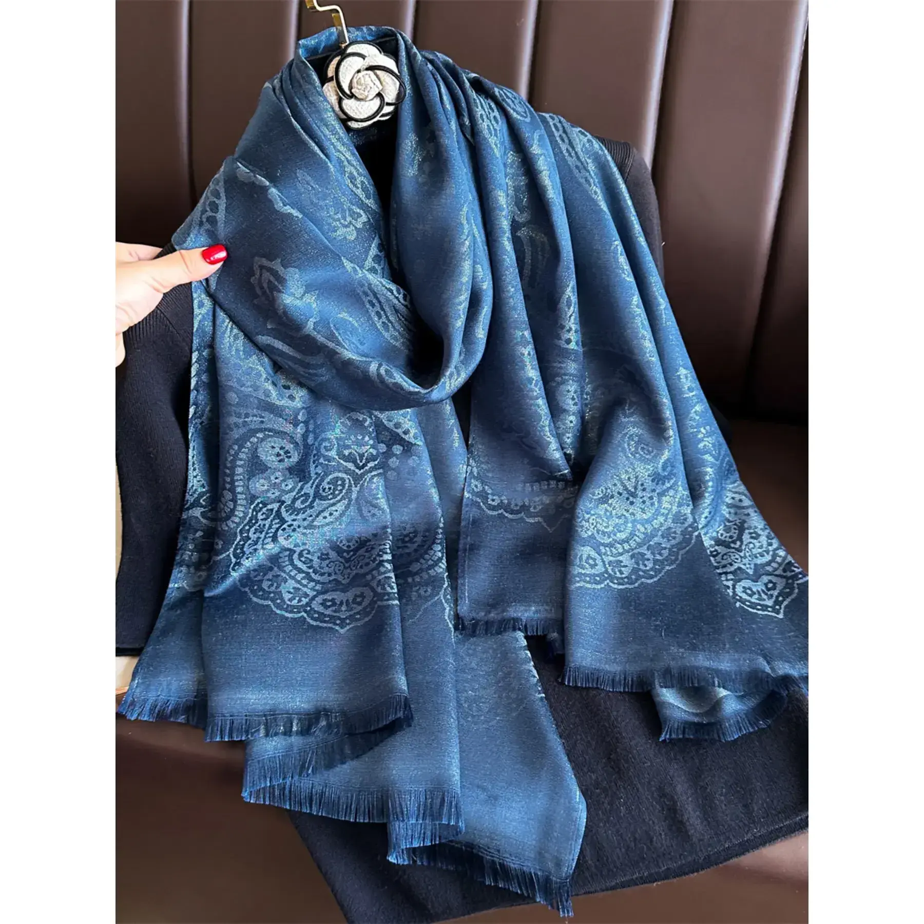 Women's Fashion New Jacquard Scarf, Soft Comfortable Headscarf, Stylish Long Shawl for Ladies, muslim hijab Perfect Accessory for All Seasons Floral Print Shawl printed scarf Gift