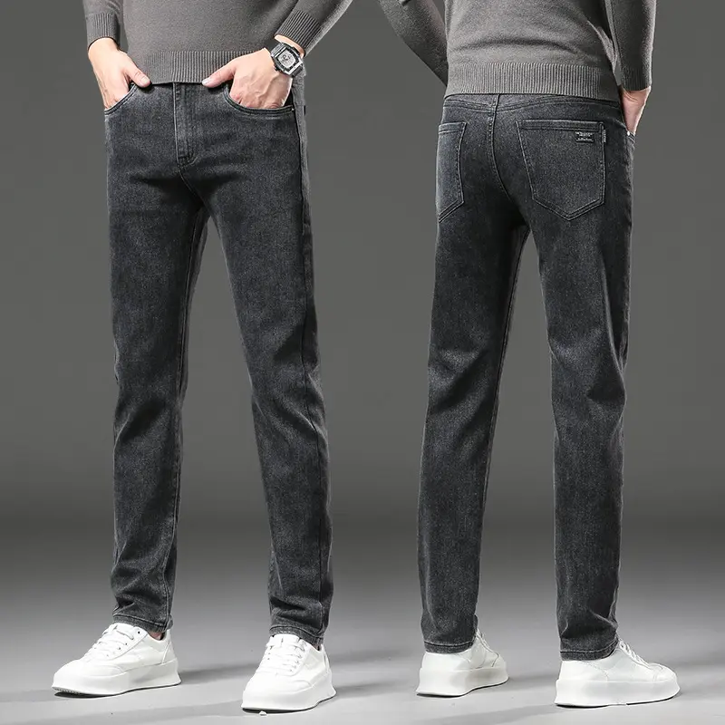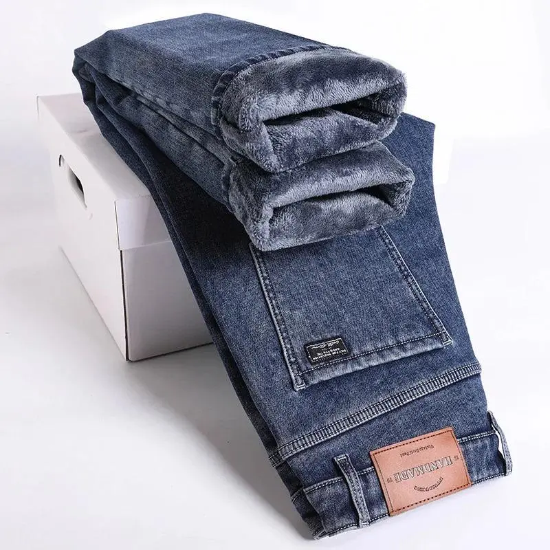 Winter Fleece Thick Warm Jeans Men's Slim Straight Elastic Denim Pants Casual Male Clothing Fashion Plush Trousers