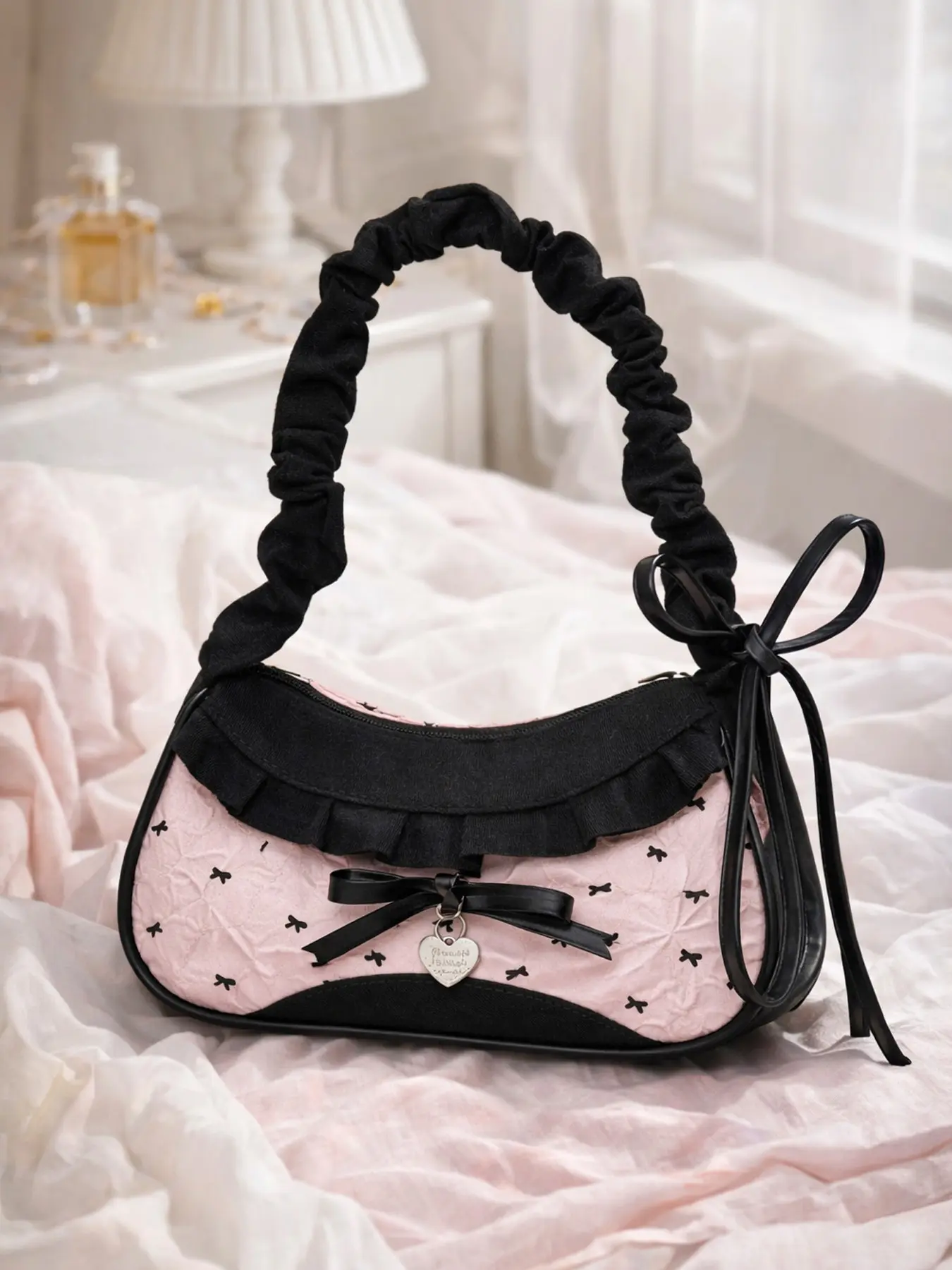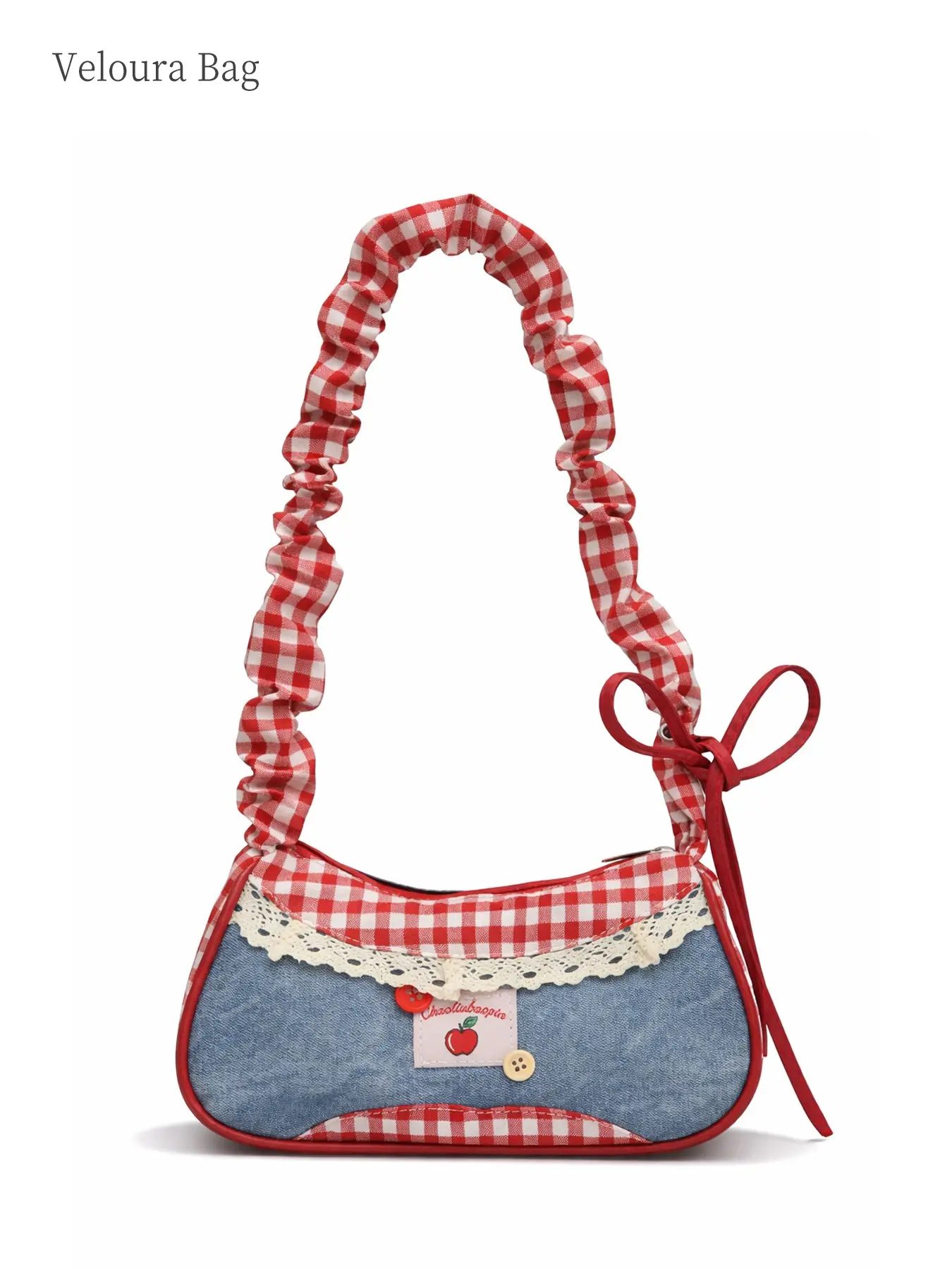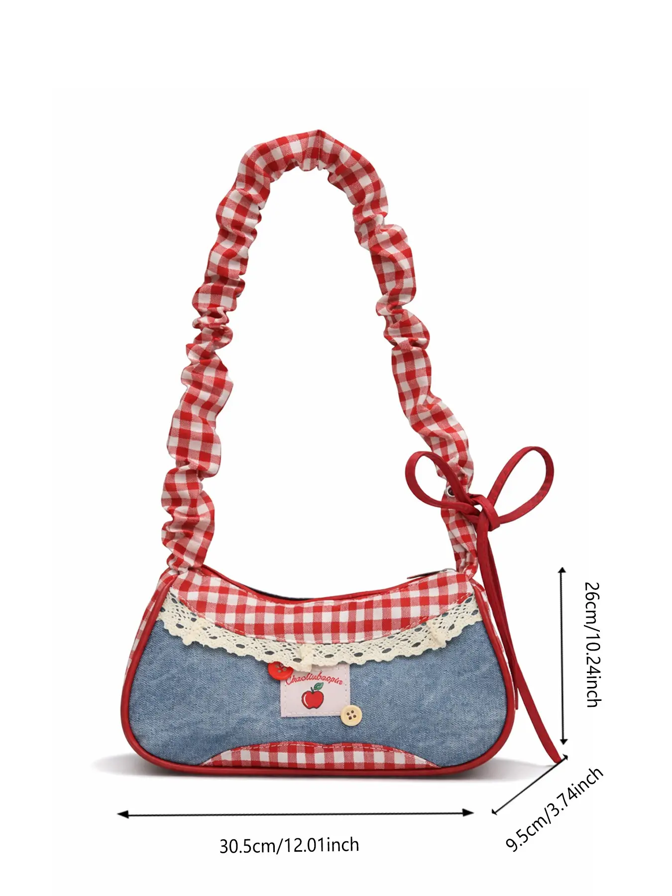1pc Vintage Plaid Denim Shoulder Bag for Women, Cute Ruffle Strap Handbag, Stylish Underarm Purse, Lightweight Yet Spacious Daily Bag, Fits Phone Wallet Essentials, Perfect for Dating, Shopping, Travel, Sweet Style Gift for Birthday, Mother’s Day
