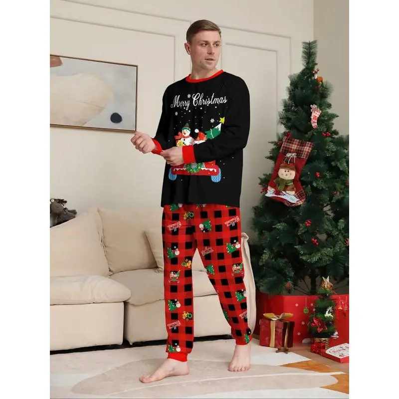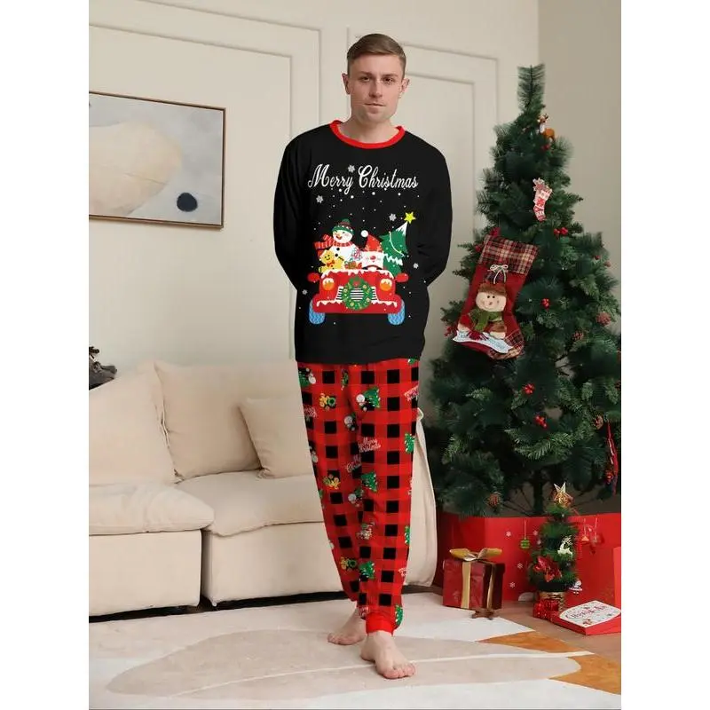 Men's Christmas Pajama Set, Long Sleeve Top & Pants, Cute Santa Claus Print, Casual Fitted Sleepwear, All Seasons Home Wear