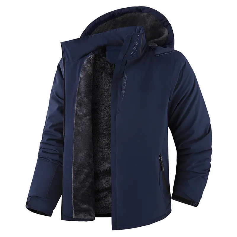 Warm Men's Winter Snow Jacket - Fleece-Lined Waterproof Windproof Hooded Insulated Outdoor Sports Coat, Suitable for Skiing, Hiking, Camping, Fishing, Mountaineering, Travel, Snowboarding, Large Size
