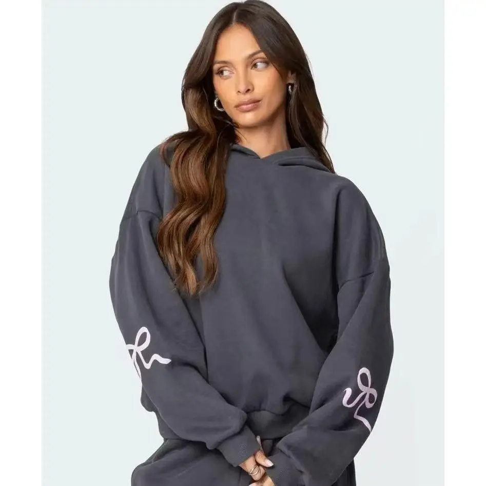 BowDetailSweatpants,Autumnandwinternewcross-borderEuropeanandAmericanroundnecklongsleevedlooseandthickhoodiewomen'sfashioncasualwidelegpantsset