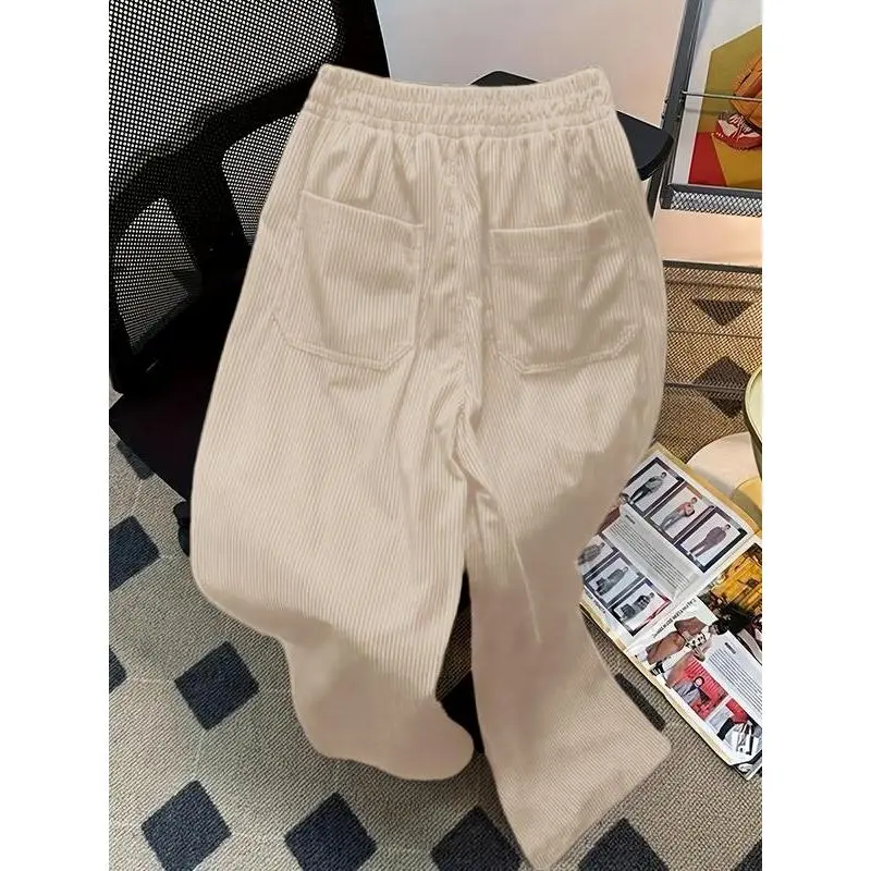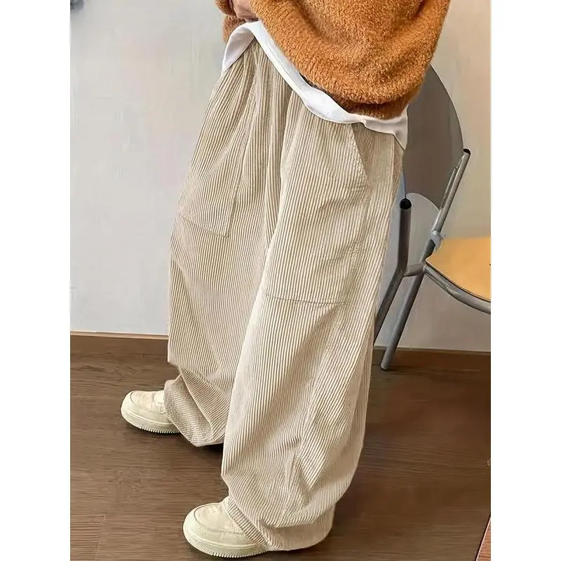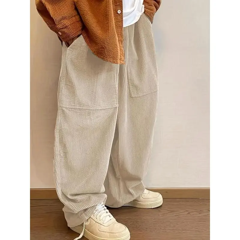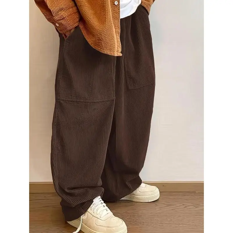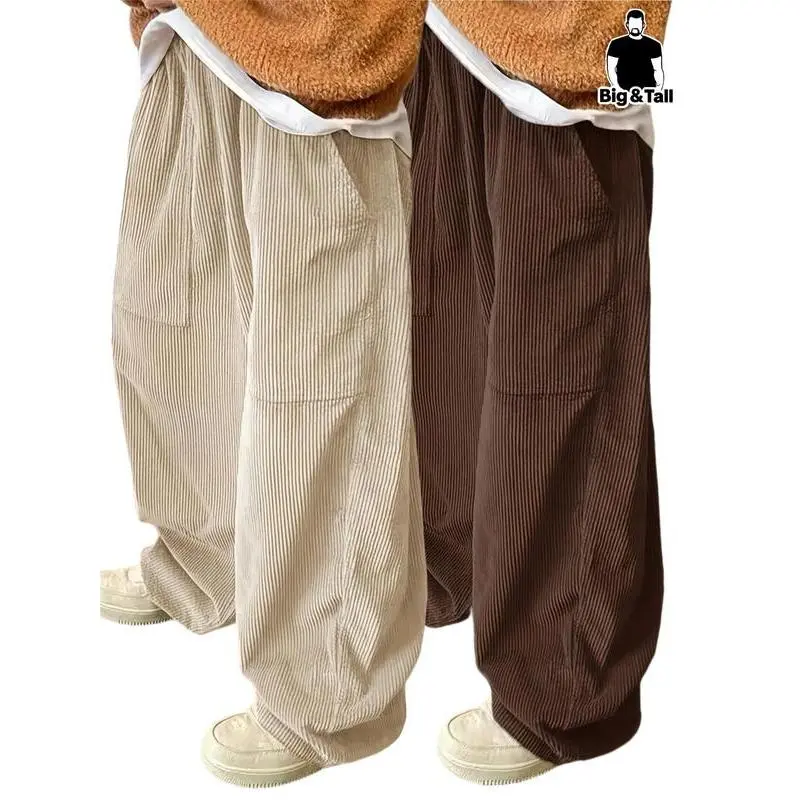 ��Plus Size�� Men's Solid Corduroy Pants, Casual Comfy Elastic Waist Trousers for Spring & Fall, Fashion Men's Bottoms for Daily Wear