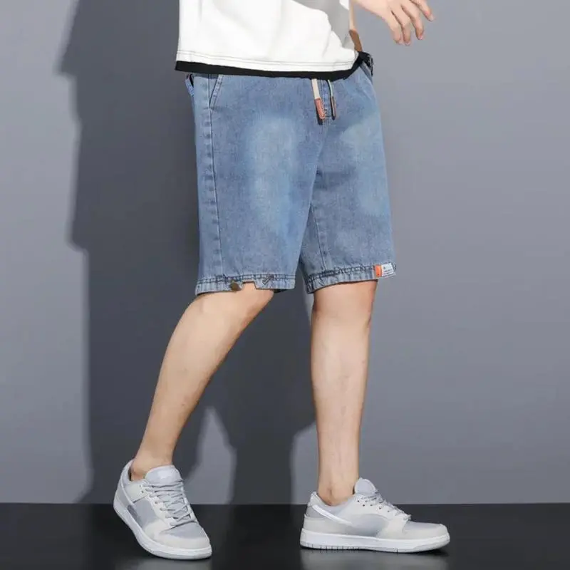 y2kMensLooseBaggyDenimShortMenJeansFashionStreetwearHipHopLongCapriCargoShortsPocketMalepantalonescortos