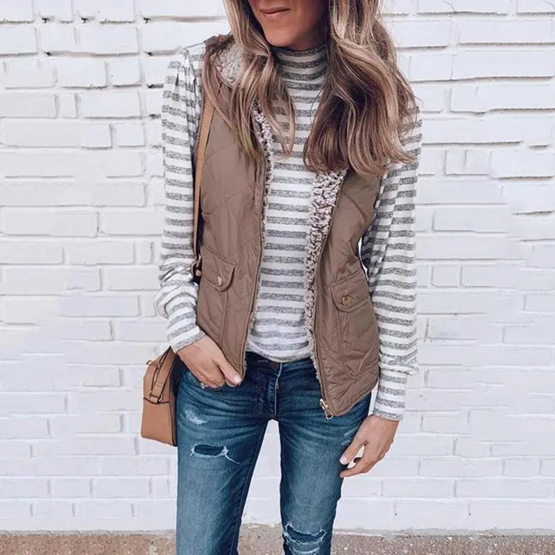 WomenWInterWarmVestSolidColorStandCollarWarmPaddedZipperUpSidePocketsGiletQuiltedPufferWildFashionVest