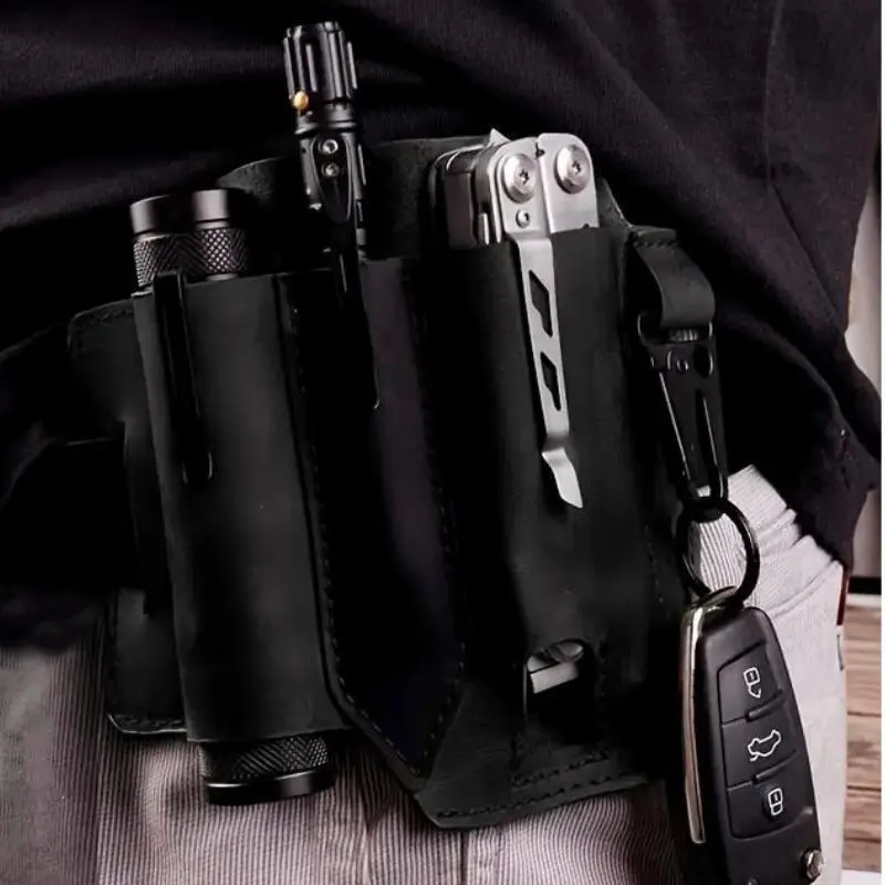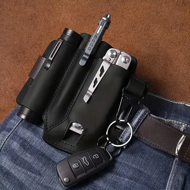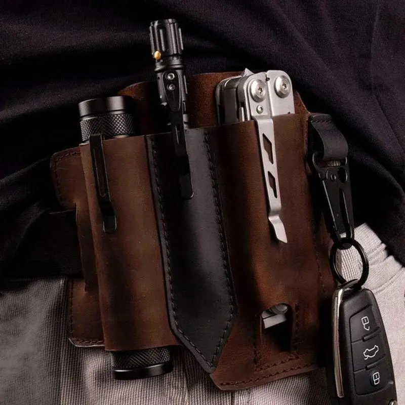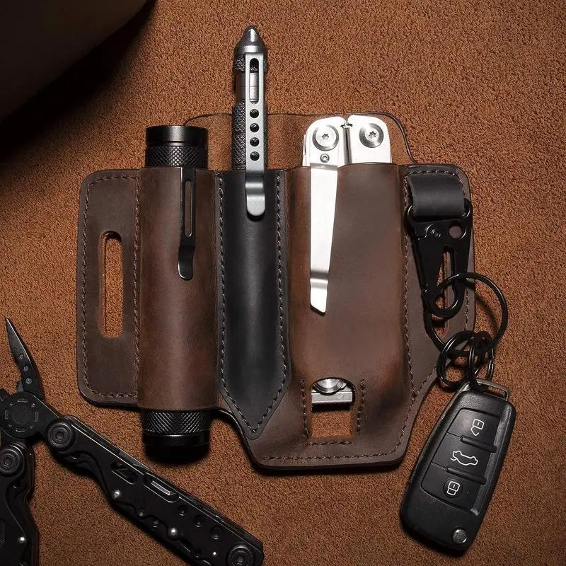 FauxLeatherEDCHolsterMultitoolSheathforBelt,DurableMultifunctionalToolHolster,CarryRetroOrganizerPocketwithKeychain