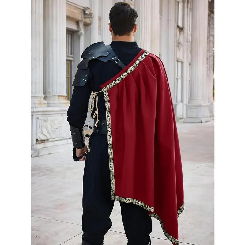 MensRenaissanceShawlHalfShoulderCapeMedievalSamuraiCloakLARPWarriorRenFaireHalloweenCostumeMenswearClothesCosplayGamis