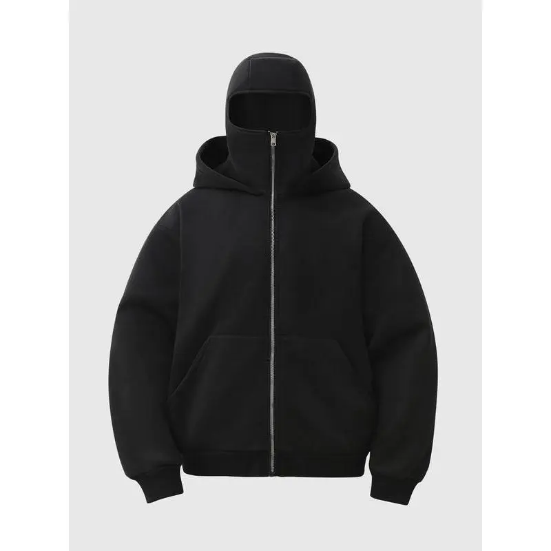 Hooded Zipper Sweatshirt with Integrated Head Cover, Minimalist Design, Functional Style, Perfect for Unique Jackets