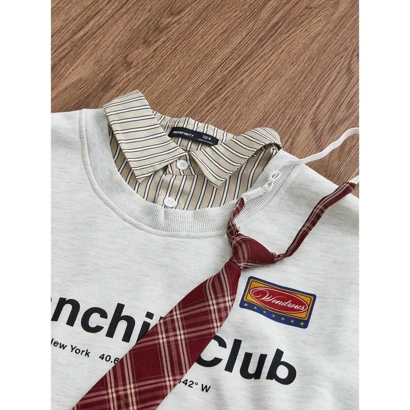 Men's Fashion Casual Loose Knitted Long Sleeve Pullover, 2 In 1 Sweatshirt Design